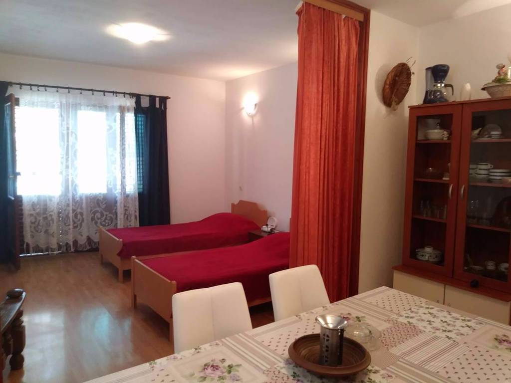 Wohnzimmer mit zwei Betten, Esszimmer und Küche