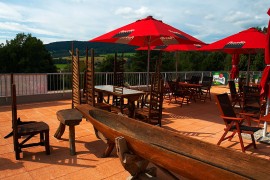 Dále zde najdete kavárnu s prosluněnou terasou s nádherným výhledem na Lipno, kde můžete posnídat, občerstvit se a večer i pobavit při příjemné muzice. Å iroký sortiment pití a občerstvení zaručeně uspokojí i náročné gurmány i gurmety.