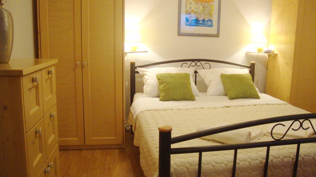 Přízemí, obývací pokoj s manželskou postelí + přistýlka, kuchyňka, sprcha s WC, terasa, TV, SAT TV, SMART TV, WIFI, ventilátor, parkoviště, samostatný vchod, klimatizace, budík.