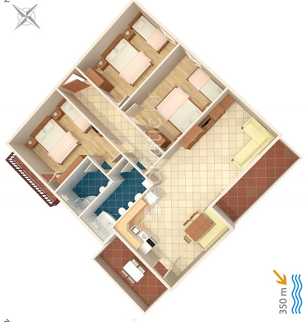 3 Double Beds