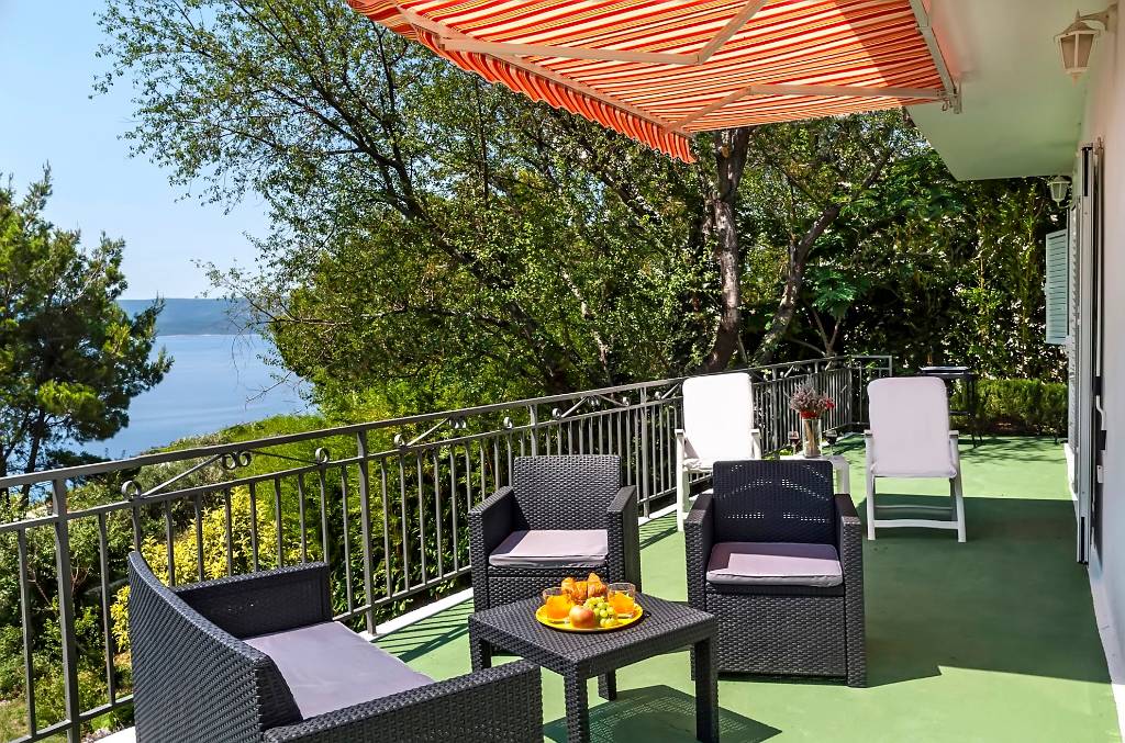 Beautiful stand-alone house located in small place Marušići is perfect for travelers seeking dream holidays away from city crowds and noise. House has perfect view on mountain of Biokovo, island of Brac and blue Adriactic sea. House is fully equipped from the washing machine in the bathroom, microwave, barbecue, hairdryer, iron, ironing board, hair dryers, Wi-Fi, TV, radio-CD, oven, toaster, blender and coffee maker. House has one parking place abover the house.