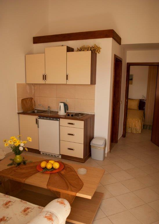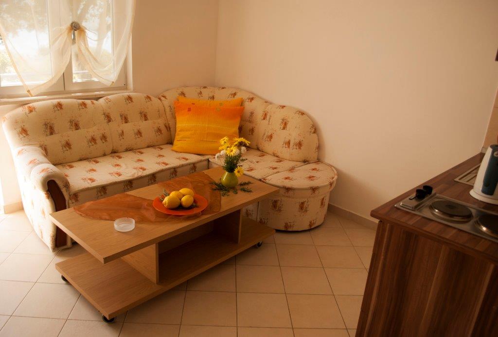 This holiday apartment contains a living room with kitchen, one bedrooms and a bathroom. It has a total surface of 30 m2. It is designated for accommodation of 4 persons (2+1) ili (2+2). The holiday apartment has a sea view and is located on the first floor.