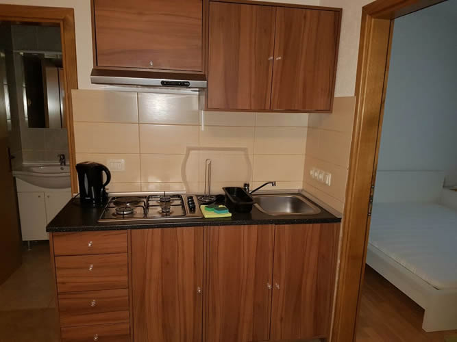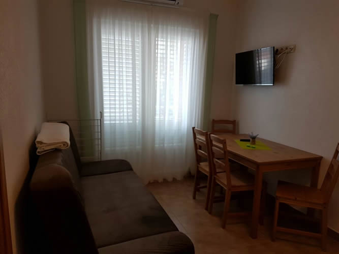 There are four apartments, two are in ground floor, and two are on first floor Apartments have: Sat / TV / Wi-Fi / Air condition / Terrace The size of one apartment is: 45m2+10m2(Terrace). - 2 bedrooms with a double bed + extra bed - The kitchen-dining room equipped with dining service, refrigerator, coffee machine, microwave and electric kettle. - Bathroom (shower, toilet) - 1 parking place by the house - barbecue grill for the common use