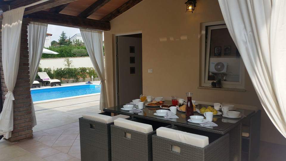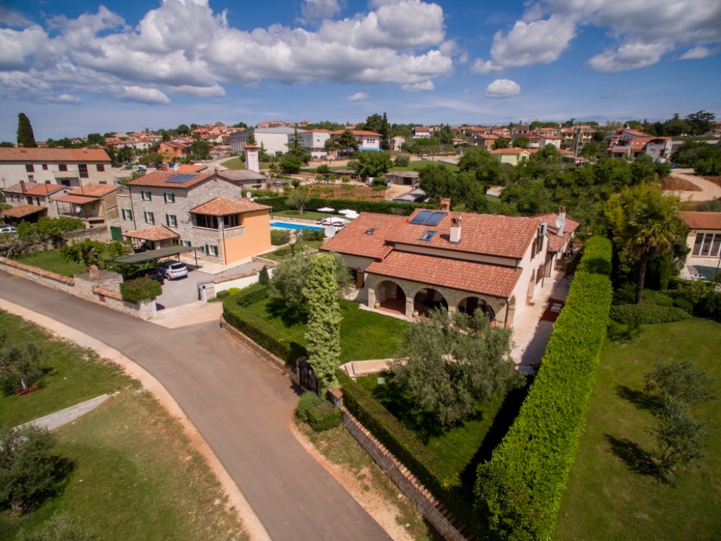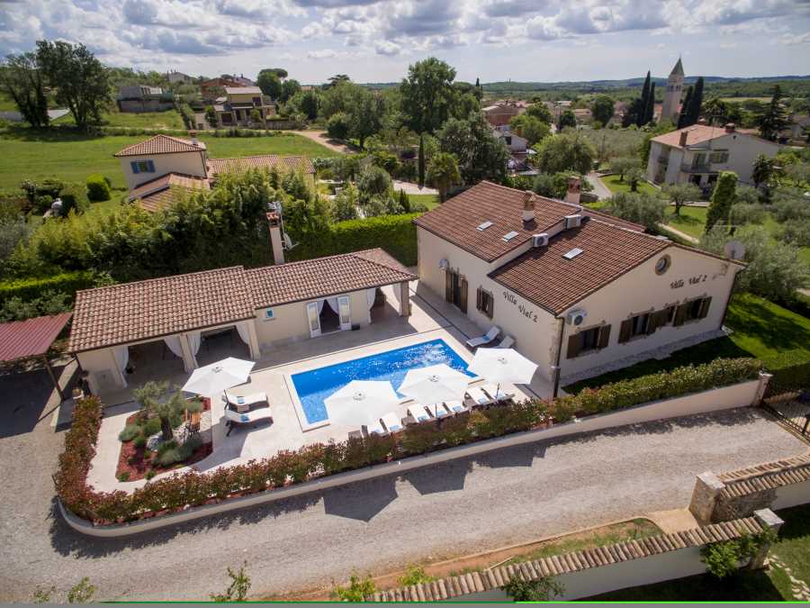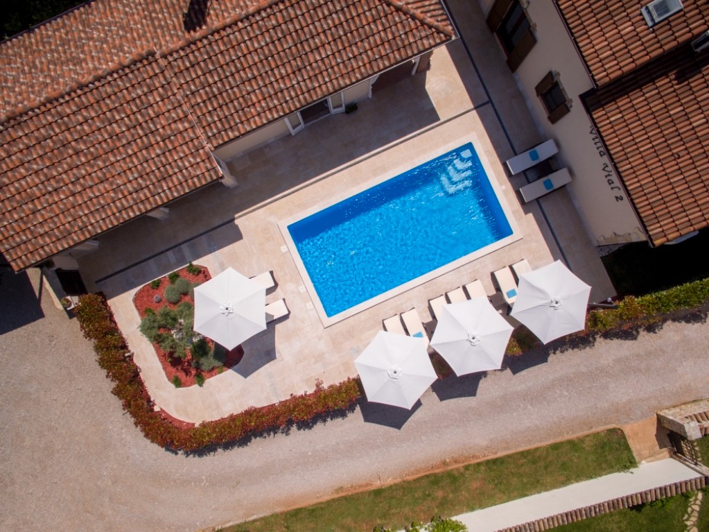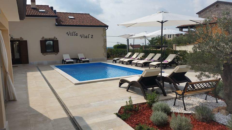 Villa Vial 2 is a perfect choice for a memorable family vacation. Located in a peaceful Istrian village of Labinci near Porec, a very well known Croatian touristic centre. Vial 2 is well connected to all the parts of Istria, its entertainment and historical attractions. The villa comprises of two separate units, the main house and the outside kitchen and entertainment area. The main unit has four stylish bedrooms, four bathrooms, kitchen and two lounge areas with comfortable sofas perfect for gathering and relaxing at the end of a long day. The villa’s interior is elegantly designed with light tones and a lot of natural light, giving the house an immaculate feel of freshness. The terrace on the front side of the house makes a perfect place for breakfast or morning coffee overlooking the traditional olive trees and the spectacular Adriatic Sea. The other part of the villa is located on the back side of the main house, near the private swimming pool. It's rustic summer kitchen is a perfect fun place for cooking and barbequing during the hot summer days. The kitchen has great inside and outside dining areas, giving guests the option of dining in a rustical and elegant environment or enjoying a meal with a view to the pool. Next to the kitchen, there is a big play room with many games perfect for child entertainment as well as games for adults looking for some fun and laugh. The swimming pool on the backside of the house is hidden from the street, giving the guests full privacy in a beautiful Mediterranean environment with olive trees and aromatic herbs. Besides a private car parking, the villa offers bicycles for exploring the local attractions or an adventure discovering the pure untouched Istrian nature. Designed for relaxation as well as fun, Villa Vial 2 is a great choice for groups of any age.