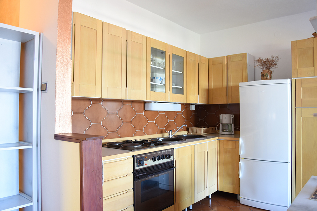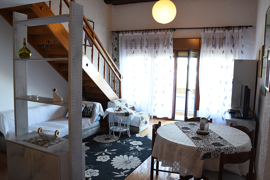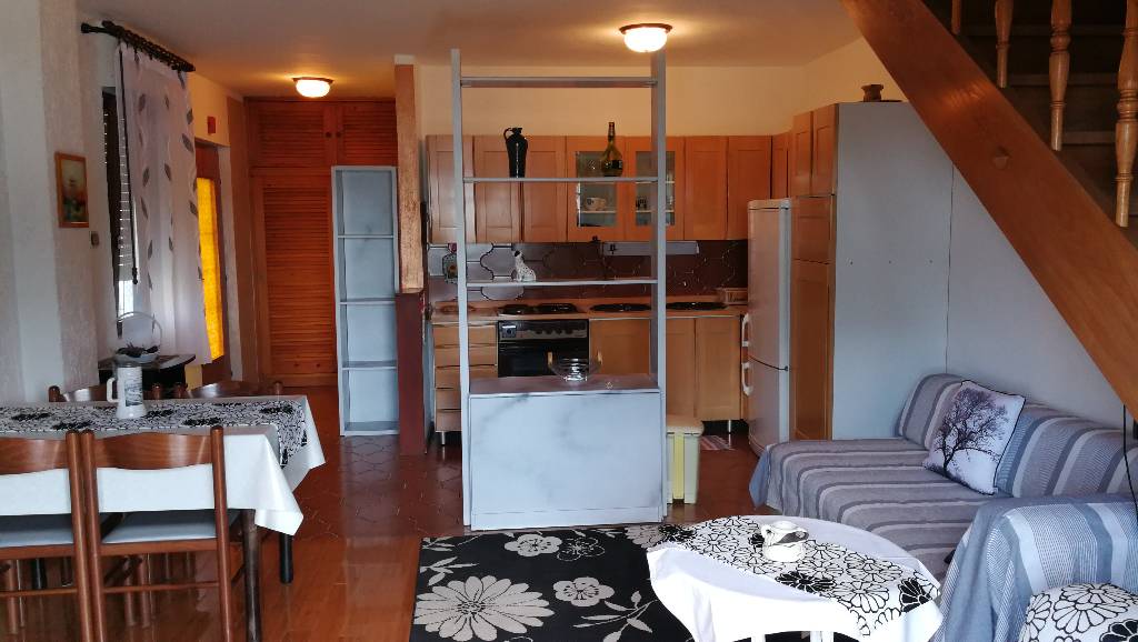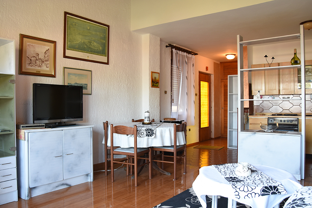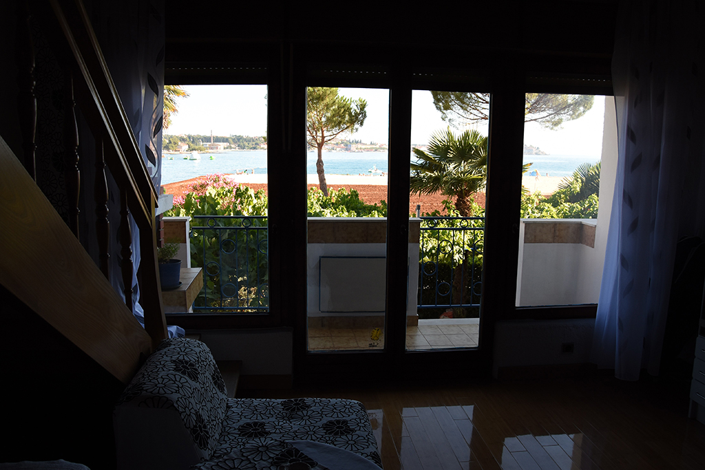 A family house, situated in a bay on the north side of the town, located at the beach, with a panoramic view of the old town. The house stands in a garden, and a quiet road separates it from the beach. Apartment C-Corallo is an independent two-storey apartment, spacious bedroom in the attic, a balcony overlooking the sea and the city. The apartment consists of kitchen and living room with sofa, bedroom with double bed, bathroom with bathtub and washing machine; has a fridge with freezer, oven, coffee maker, WiFi, SAT TV, safe, air conditioning, clean towels and bedding, no extra cost for final cleaning, tourist tax included in the price. You can leave bicycles, buggies, baby carts and beach equipment in the garage and free parking is available opposite the house. In the vicinity there are restaurant, pizzeria, pastry shop, grocery store, ATM.