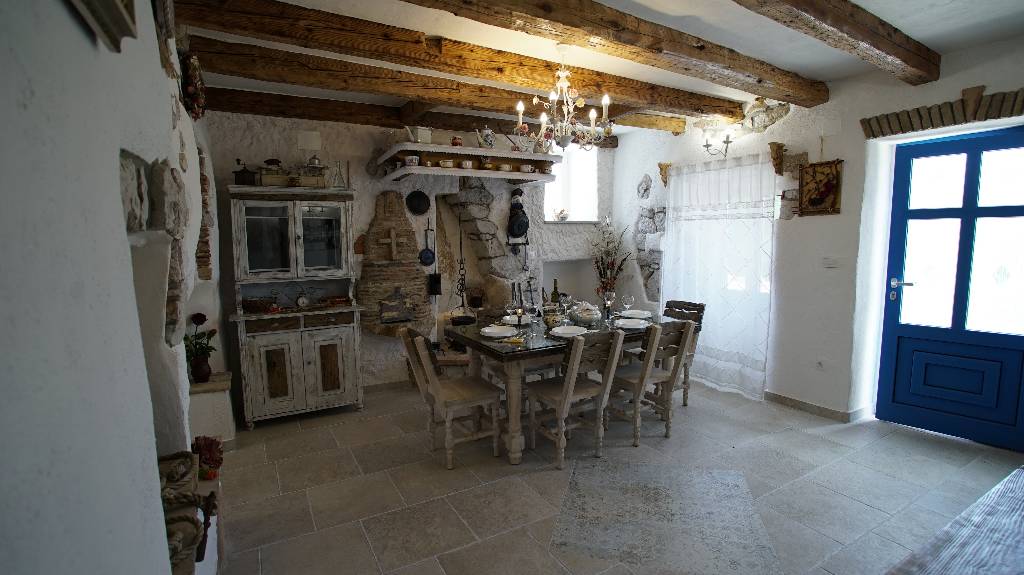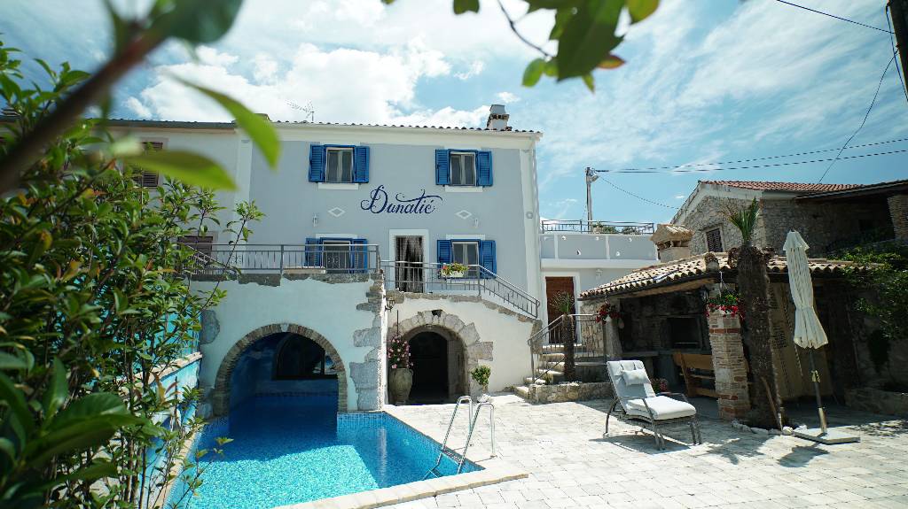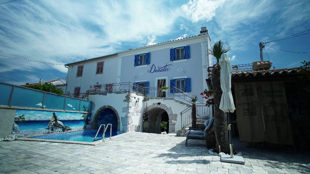 Holiday home "Dunatić" is situated in small, quiet, picturesque village Županje on Island Krk. It offers accommodation for 7 people (6+1). It is decorated in rustic, mediterranean style and it has 4 bedrooms. Guests can use private pool, grill, space for dining and hanging out by the pool, deck chairs, outdoor shower, parking and 2 terraces. The house is furnished with antique furniture, with modern accessories. The house is equipped with 2 kitchens, 2 bathrooms, 2 toilets, SAT TV, TVs with flat screen, internet, dishwasher, washing machine, coffee machine...