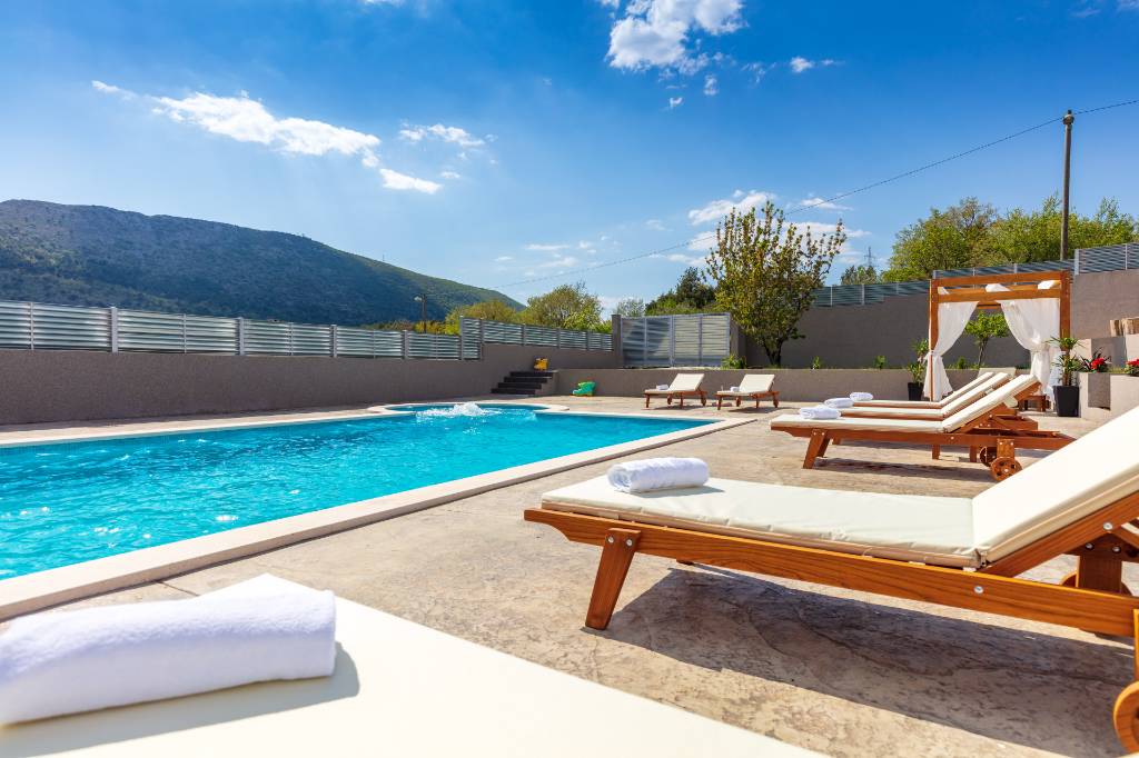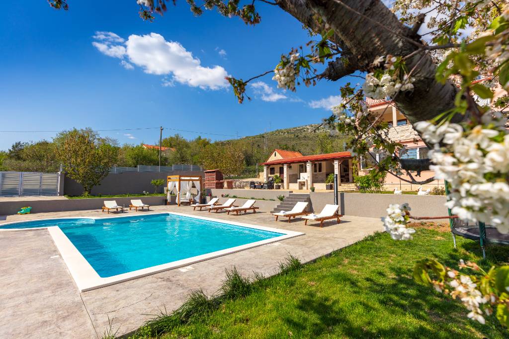 Holiday house is located in a small place Naklice. Countryside quiet environment, perfect for nature vacations, far from city noise and crowds. Only 6 km away from the town of Omis. 6 km away from beautiful, clean sandy and pebble beaches. Nearby is the Cetina canyon. Surrounded by the unmistakable beauty of nature you can enjoy the excursion or boat ride. For those who prefer a more active holiday, they can try rafting, hiking, biking, jet-skiing on a clean blue sea. Only 22 km distance from the historical core of Split (Diocletian's palace), Salona, Klis. The house is large, comfortable, cozy. It has 5 bedrooms, 4 bathrooms, 2 kitchens, living room, gym, large yard. It also has a 55 m2 large pool and a cold jacuzzi in it. It also has an outer and an internal combustion chamber. Hosts are always available for questions and assistance.