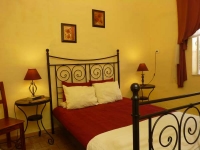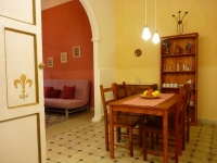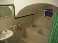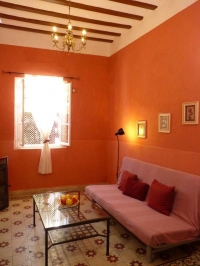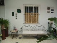 Typical, "Casa de Vecinos", i.e. apartment house in authentic Andalusian style, layed in tranquil street of the historic centre of Jerez de la Frontera. The house is newly renovated. Special attention we have payed to the preservation of typical distinctive features, like high, large rooms, the decorative strips that finish the ceillings, visible wooden beams, handmade floor tiles, etc. The sun terrace, the huge, roofed patio and the ingrown backyard with old rose- and citrus plants invite to take a rest in nature. Because our house is situated in the historic centre of the town, almost all places of interest are within walking distance. The Andalusian Flamenco Centre, the Archaeological Museum, The Royal School for Equestrian Horse Riding or the oldest bodega of Jerez is only a stone's throw from here. Either after the vespertine visit of a typical Flamenco local or a dinner accompanied by a good bottle of Fino in one of the recommendable restaurants of the town you don't need to get into your car again to reach your holiday domicile. You just have a little walk through the old town and are back home. Authentic sense of well-dwelling: Spend a couple of days or weeks within our Casa de Vecinos Rosaleda, a typical vicinage house of Jerez and become yourself a Vecino Jerezano. The apartment "El Arco" has its name from the wide arch that separates the dining area from the salon. Bed room has full-size bed, living room with sofa bed and breakfast kitchen, bath room with bath, bidet. Entrance through patio.