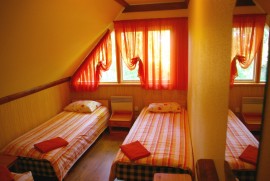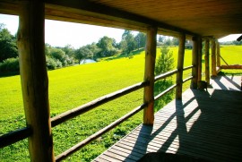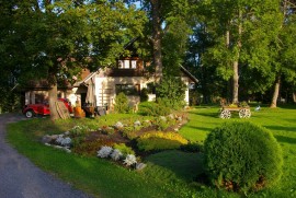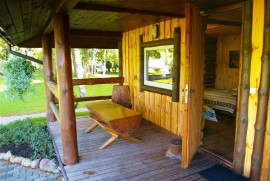 We offer accommodation in two wooden houses, in big summer garner or in the main building which has five rooms for tourists, a kitchen, two saunas and a celebration hall for up to 40 persons. There is also a possibility for camping. The bigger wooden house has two floors, two bedrooms, a bathroom, a separate toilet, a kitchen corner and a fireplace. In the smaller one, up to 4 persons can sleep. Celebration hall offers room for roughly 100 persons.