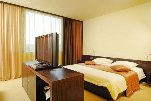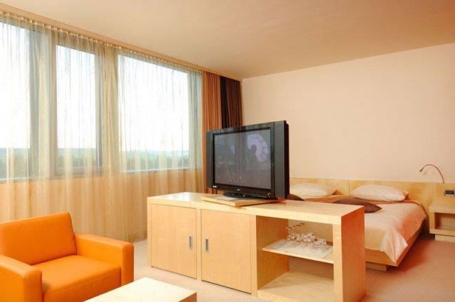 HOTEL CASINO SAFIR SEZANA Hotel Casino Safir is a hotel in Slovenia and located in Sežana - just 200 meters from the Slovenian-Italian border (from Trieste only 8,7 km). Expects its guests with comfortable accommodation, Karst-Mediterranean cuisine in restaurant Carat, wellness and diversity of entertainment options in Casino Safir. The hotel offers 51 rooms, of which 44 double bedrooms and 7 suites. All the rooms are equipped with air-condition, wireless Internet connection, cable TV, LCD TV-set, mini bar, safe box and a direct telephone line. Meeting room with size 30m2 can host up to 30 guests. Both rooms are equipped with all the necessary technical appliances needed for meetings, education seminars or business conferences. You can park for free in our garage house with 90 parking lots or on the additional 57 outdoor lots beside the hotel. We also have places reserved for bus parking. The hotel is an excellent starting point for interesting trips in the Karst. Lipica, Štanjel, Škocjan caves, Postojna cave, Predjama Castle as well as small villages and endless wine routes for each hiker will be an interesting discovery. On guest’s request, we can also organise transfers to airports or bus or railway stations. Elegantly equipped rooms Hotel rooms are peaceful and quiet and therefore appropriate both: for a short break or a longer stay in the region of Kras with your family members or business partners. Most rooms offer a view on the untouched karstic nature in our surroundings. We have rooms for smoker and non-smokers. Hotel has 44 double rooms equipped with: air conditioning, direct telephone line, Cable TV programmes, LCD TV, free internet access, safe box, mini bar and bathroom with bath tub. There are also superbly equipped suites with jacuzzi. Superior suites Suites of hotel Safir with its spaciousness and luxury equipment offer complete pampering and comfortable rest. After a long day goes well relaxing bath in the Jacuzzi, which is available in all suites and the culinary delights in the restaurant Carat. There are 7 spacious suites with: - air conditioning, - direct telephone line, - Cable TV programmes, - LCD TV, - free internet access, - safe box, - mini bar and - bathroom with Jacuzzi.