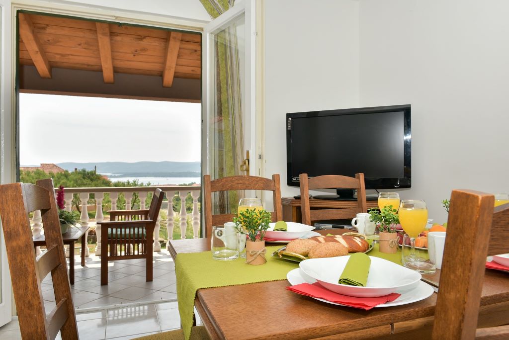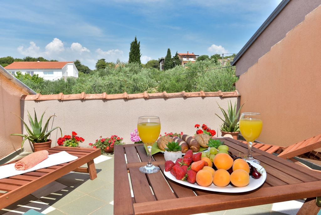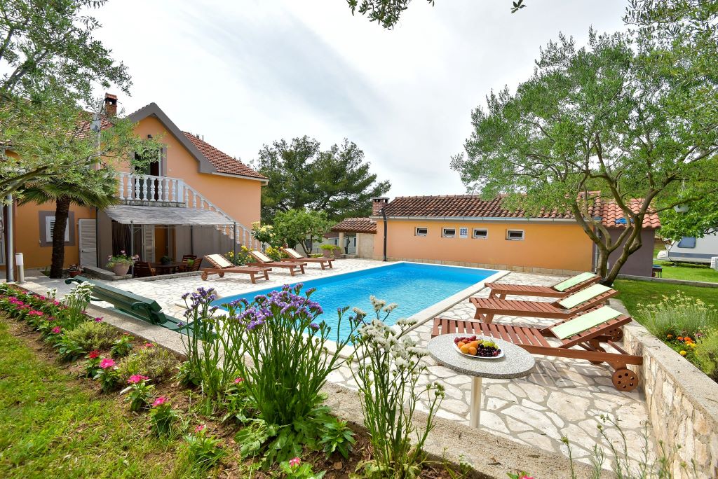 Give us the opportunity and your unforgettable holiday you will experience just by us. In our apartments superbly landscaped near the pine forest and the sea your vacation will be complete. The promenade and the nearby lookout, bike paths, close to Vrana Lake Nature Park, and the National Parks Kornati and Krka waterfalls, ancient towns of Zadar and Sibenik, will surely meet the expectations of the most demanding guests. Our complex is the size of 2500m2, surrounded by olive trees and pine forests. From the courtyard there is a nice view of the sea-Pasman Channel. In the complex there is: • Family house, where there are two separate apartments (for 4 and 6 people). • Apartments are equipped with air conditioning, TV, Wi-Fi and terraces overlooking the sea and swimming pool. • Pool: Next to the house is a swimming pool with beautiful surroundings and sun loungers • The pool is located, there are two bathrooms with showers and two bathrooms, separate space for laundry, which is Opremjen with a washing machine and tumble