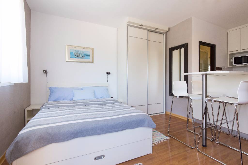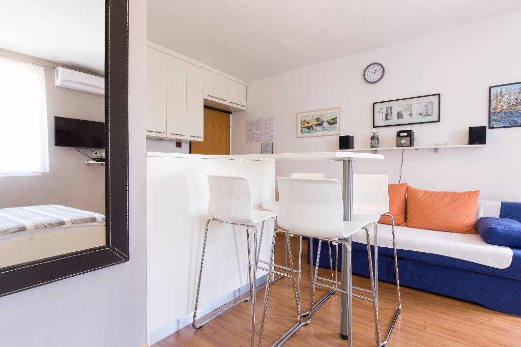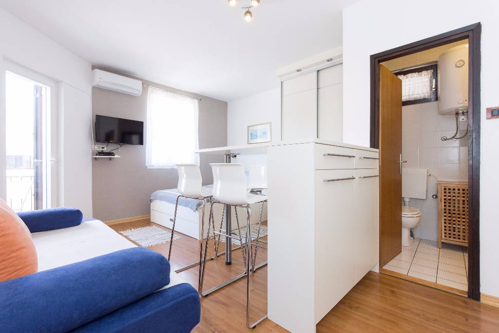 Studio S1: Cosy, completely redecorated and fully equipped apartment ideal for 2 persons and a child or 3 persons, close to beaches, close to city center and in a peaceful part of city Krk. You will have panoramic sea view from the balcony with table and chairs, free wireless flat internet, LCD TV, air conditioning, HIFI CD, barbecue with table and benches in the garden and lots of indoor light that will make your holiday comfortable and relaxing. Studio S2: Brain new Interior in Apartment equipped with free WiFi internet, AIR conditioning cooling/heating, HIFI CD system, LCD TV, LED lights, barbecue with table and benches. Couple of minutes to the rock and sandy beaches, 10 minutes from city center, free parking in front of the building.