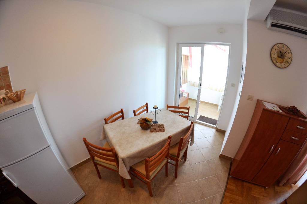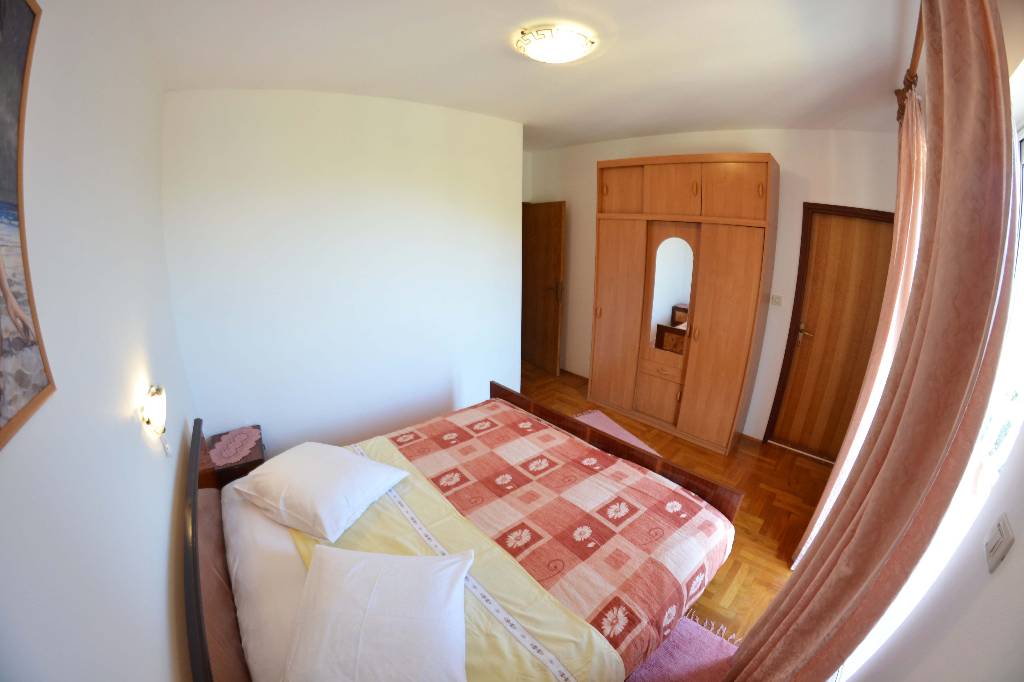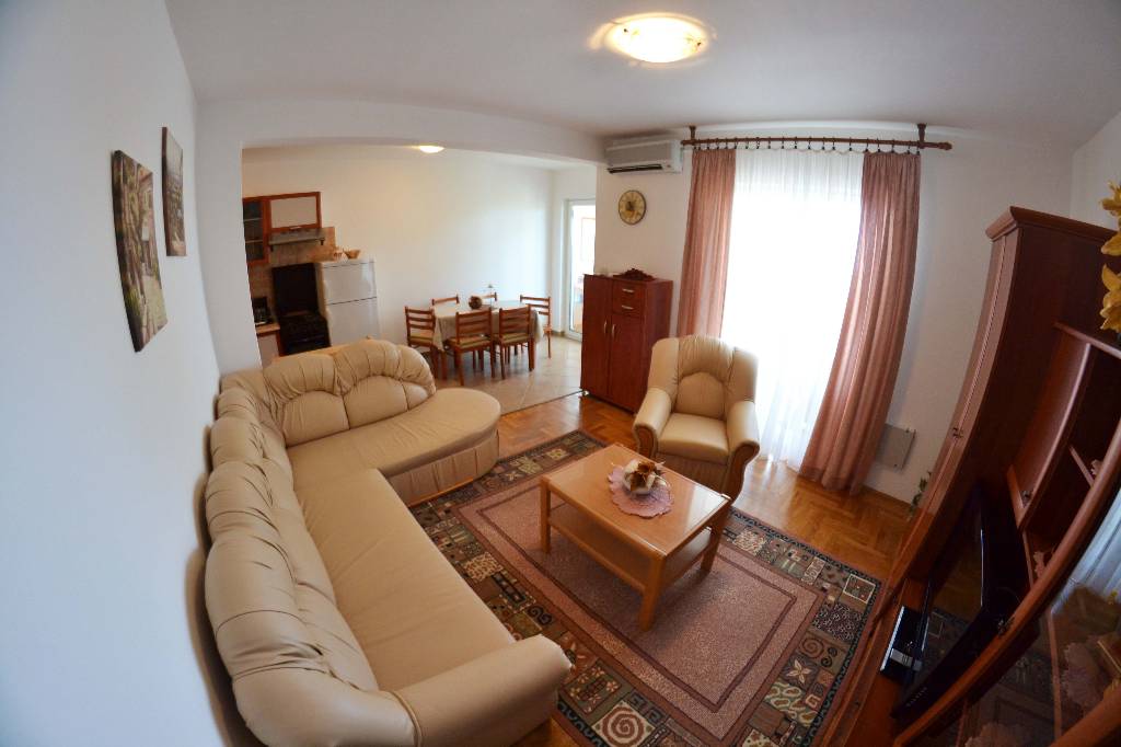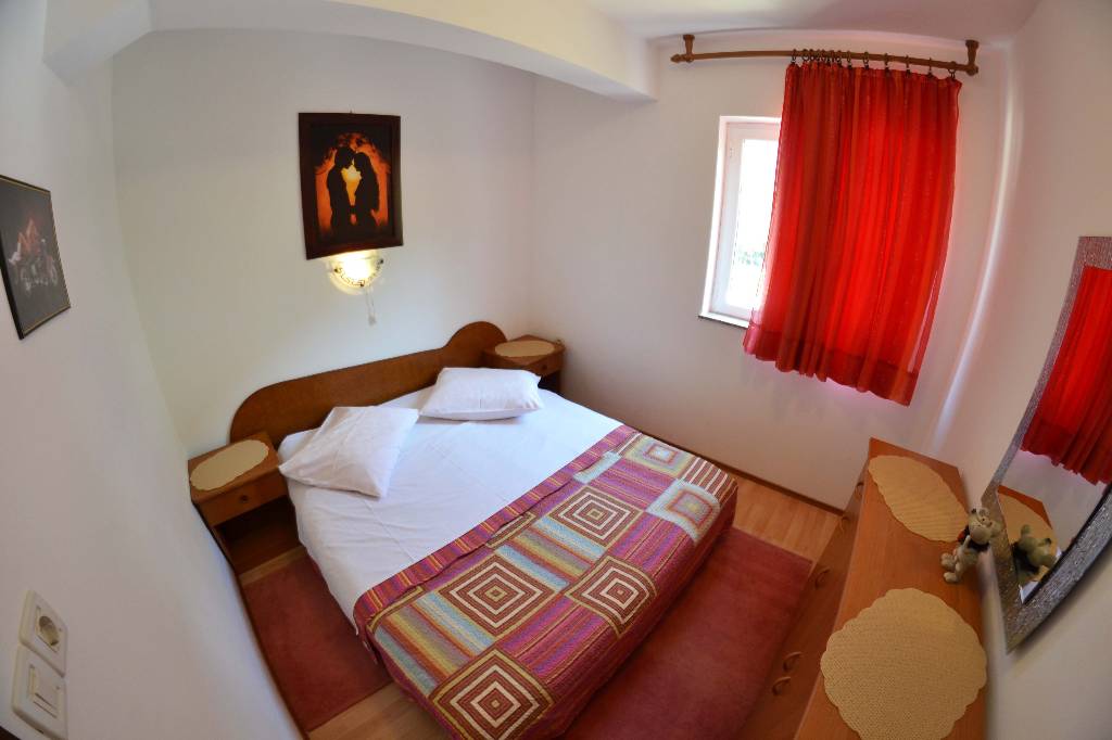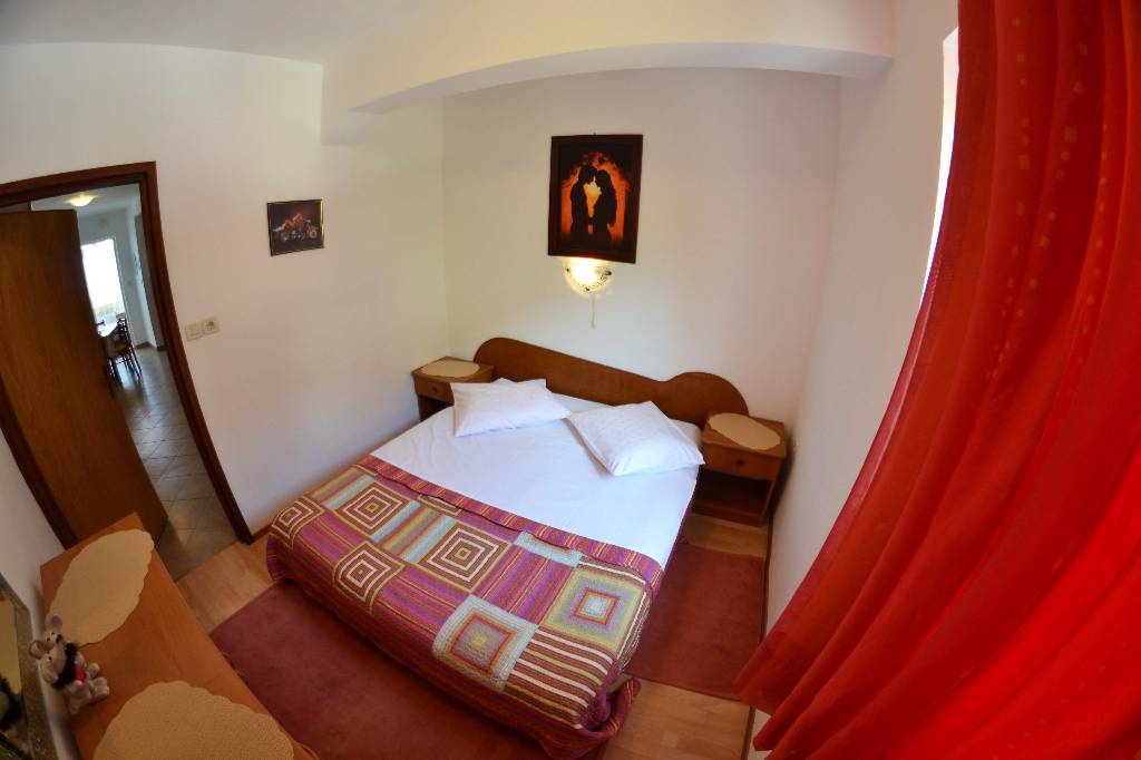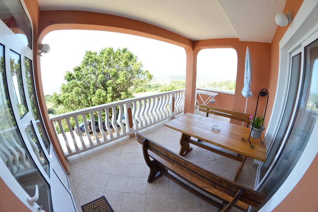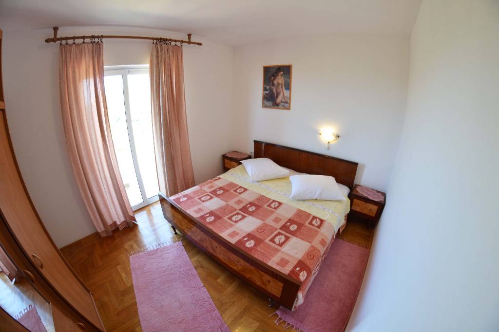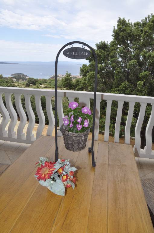 This apartment has two bedrooms, two bathrooms, a large kitchen, a dining room and a large living area. It is suitable for 4 persons, but with the addition of extra beds, the capacity of this apartment increases to 6 persons. Each room has a closet, a double bed and night stands. Each bathroom has a washbasin, a shower, and a toilet. The apartment also has a large terrace with a wooden table suitable for 6 persons with a beautiful view of the old island centre. One of the rooms has a balcony, too, with a beautiful view of the whole north-western side of the island. The apartment is equipped with an air conditioner and a dishwasher. In the living room there is a large pull-out couch and a plasma TV with satellite programmes in several languages. The entire apartment is covered with a strong WiFi signal in case you need to visit the internet. The apartment also includes free use of a swimming pool, beach chairs, a barbecue place... There is a large spacious parking lot right next to the house.