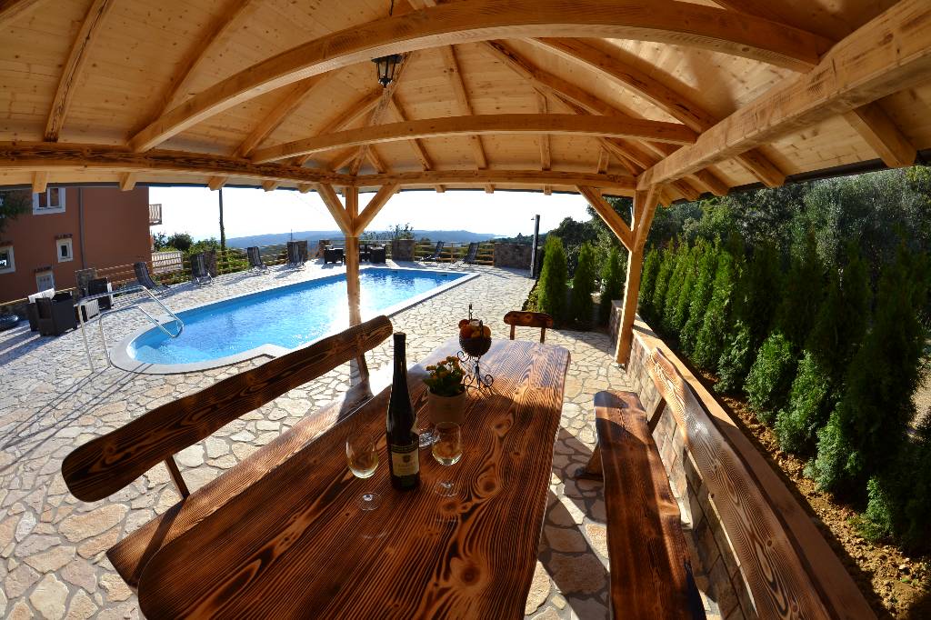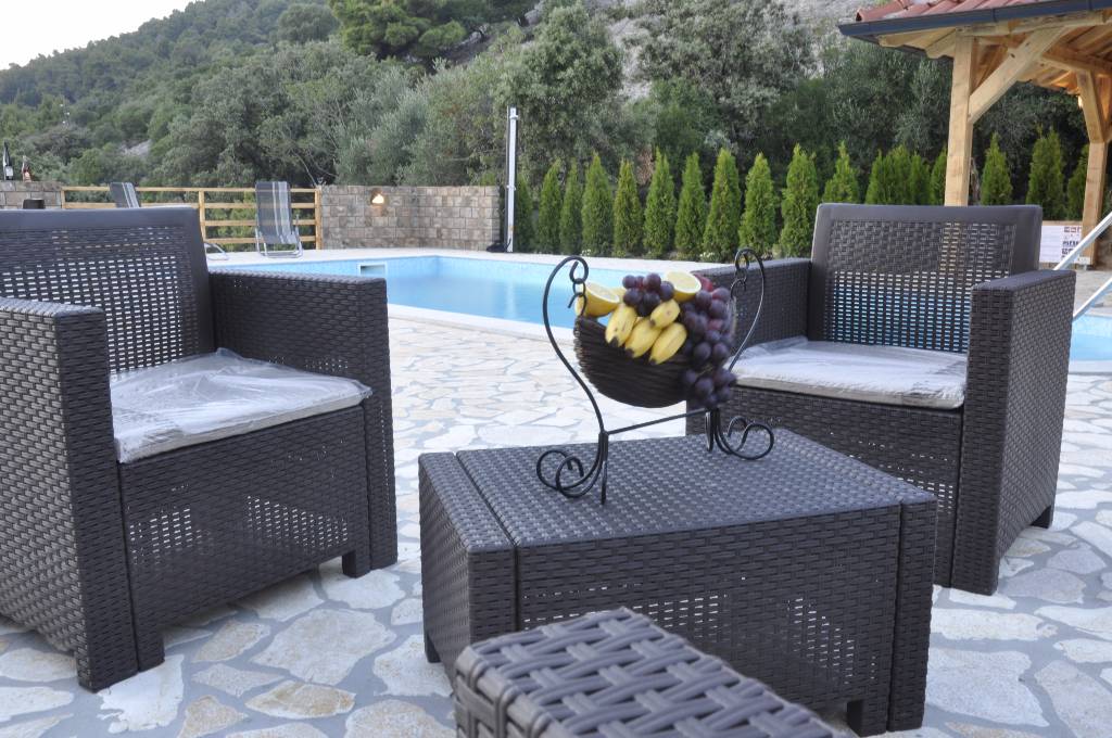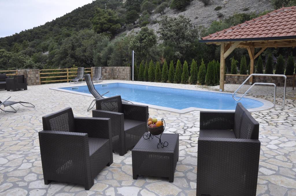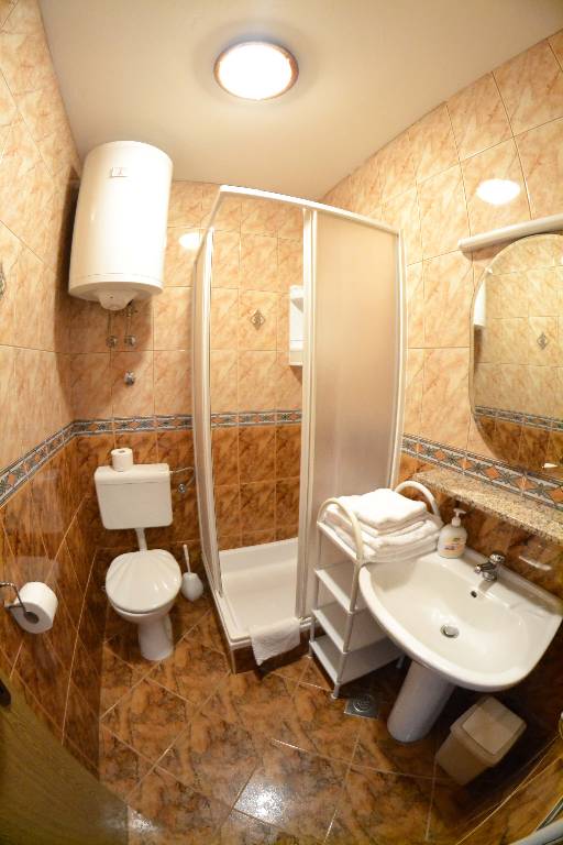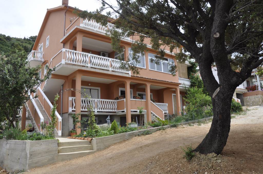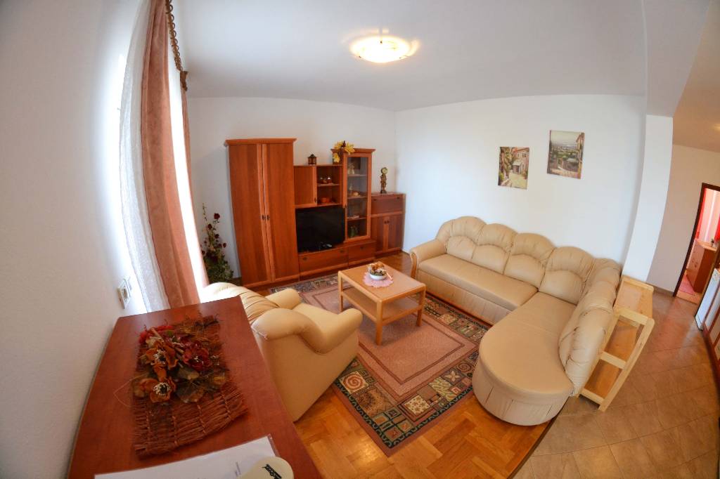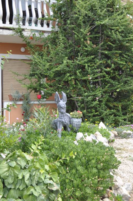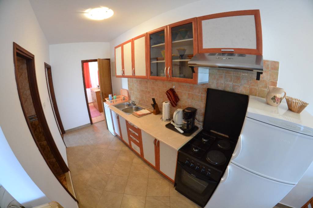 This apartment has two bedrooms, two bathrooms, a large kitchen, a dining room and a large living area. It is suitable for 4 persons, but with the addition of extra beds, the capacity of this apartment increases to 6 persons. Each room has a closet, a double bed and night stands. Each bathroom has a washbasin, a shower, and a toilet. The apartment also has a large terrace with a wooden table suitable for 6 persons with a beautiful view of the old island centre. One of the rooms has a balcony, too, with a beautiful view of the whole north-western side of the island. The apartment is equipped with an air conditioner and a dishwasher. In the living room there is a large pull-out couch and a plasma TV with satellite programmes in several languages. The entire apartment is covered with a strong WiFi signal in case you need to visit the internet. The apartment also includes free use of a swimming pool, beach chairs, a barbecue place... There is a large spacious parking lot right next to the house.