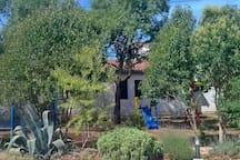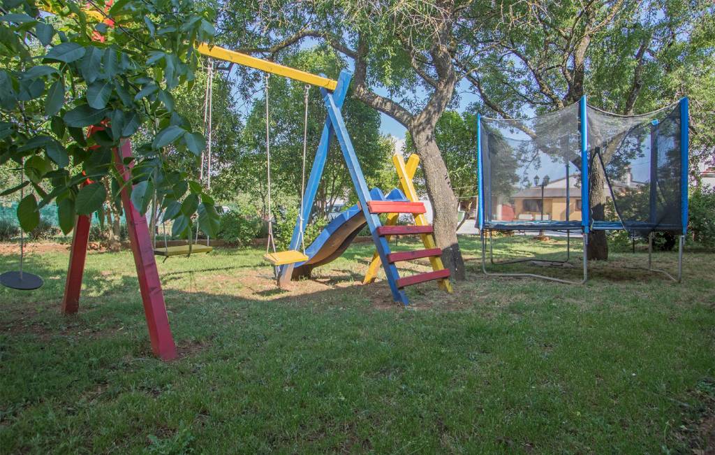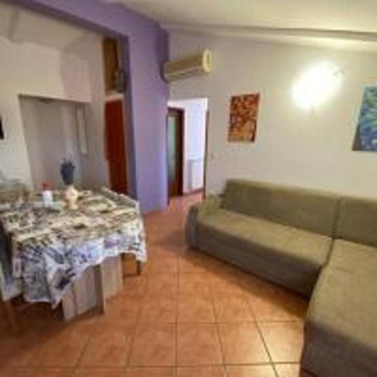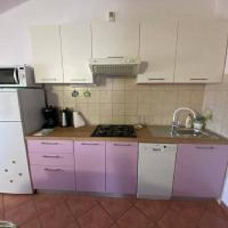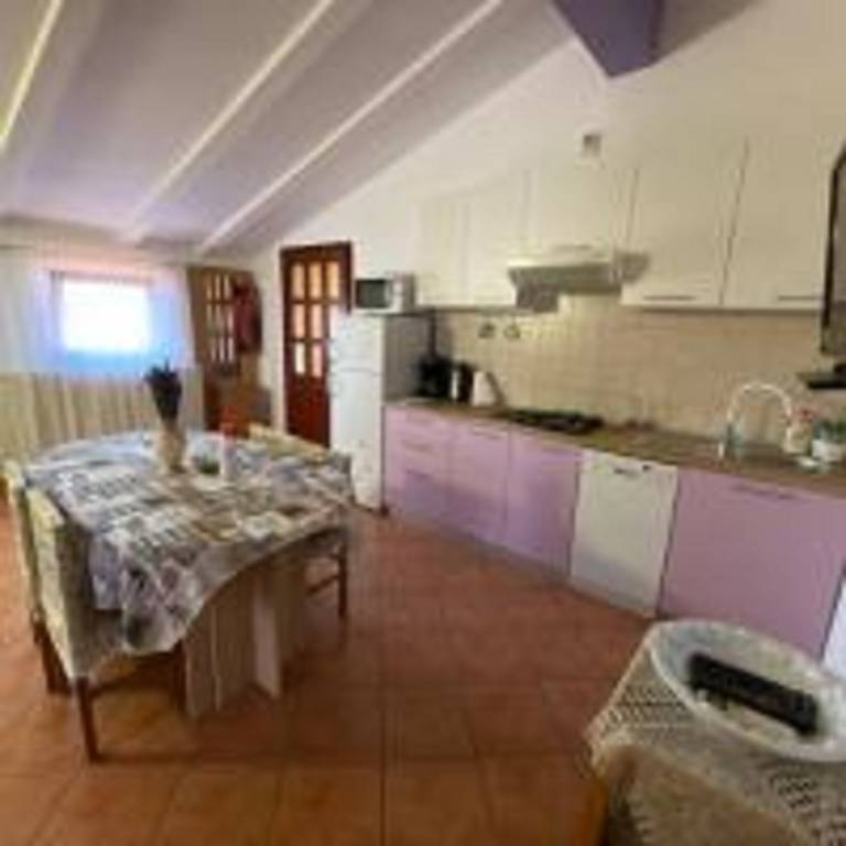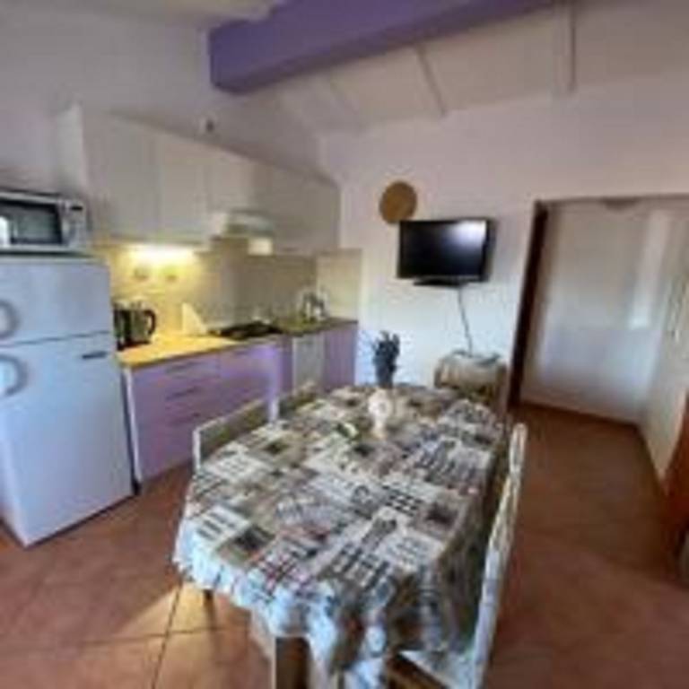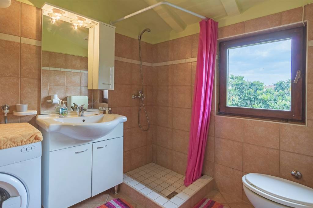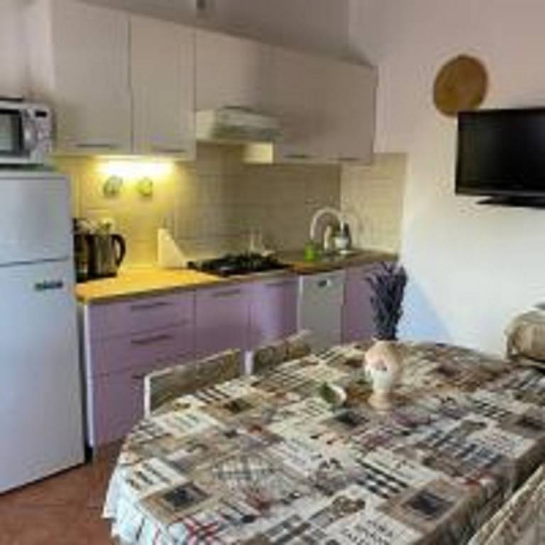 Apartment with a view of the Brijuni islands This holiday apartment is located on the outskirts of Vodnjan, surrounded by olive trees. It is on the first floor and affords a beautiful view of the sea and the Brijuni islands. The accommodation provides a beautiful, open kitchen in the spacious living room. The kitchen unit is equipped with a microwave, kettle, coffee machine, toaster, fridge with freezer compartment, and all the essentials for a pleasant stay. The apartment has air conditioning, a TV with satellite reception and a DVD player, and free wireless Internet access throughout. It is suitable for four people and has two bedrooms. The bedrooms each have two single beds measuring 90 x 200cm. You can pull out the sofa in the living room into another bed. One bedroom has its own bathroom with a shower, and the second, larger bathroom also has a washing machine. There are air conditioning units in the kitchen and in the living room, but the cool air also reaches the bedrooms. The terrace is roofed and furnished, so you can enjoy meals outdoors. In the morning you can enjoy your coffee accompanied by the chirping of crickets and the twittering of birds. The house is surrounded by over 1000m² of greenery and olive groves. There is a private parking space on site. The extensive plot of land is fenced. Next to the house, about 100 metres away, there is the restaurant run by the owner’s parents, where you can try the best ham, olive oil and wine in Istria. Breakfast, lunch and dinner, as well as traditional Istrian dishes, can be arranged on request. The nearest beaches are Peroj and Fažana, both less than three minutes (4km) away by car. Pula airport is a fifteen-minute drive away. The nearest shop is 500-700 metres away, as are a petrol station and a café. Active holiday-makers can hire bicycles nearby. The location of the house is convenient for exploring the whole of Istria, with Pula 10km away and Rovinj 20km.