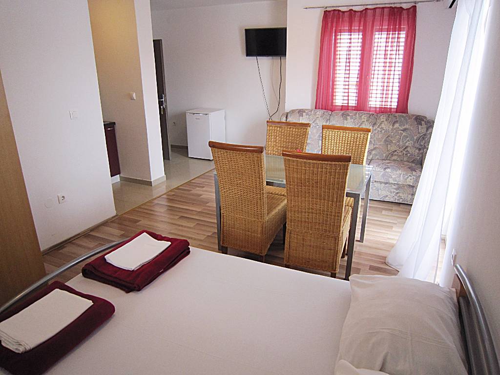 House is located in calm and quiet part of Vodice, only 450m from the beach and touristic center. Apartment is studio which means everything is in 1 room (kitchen, livingroom and sleepingroom), but it is also very comfortable. Guests have access to shared pool and grill area.