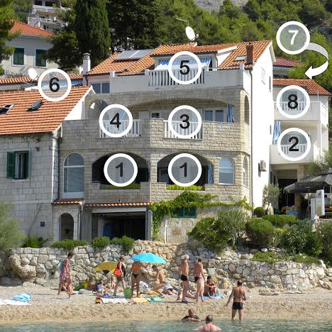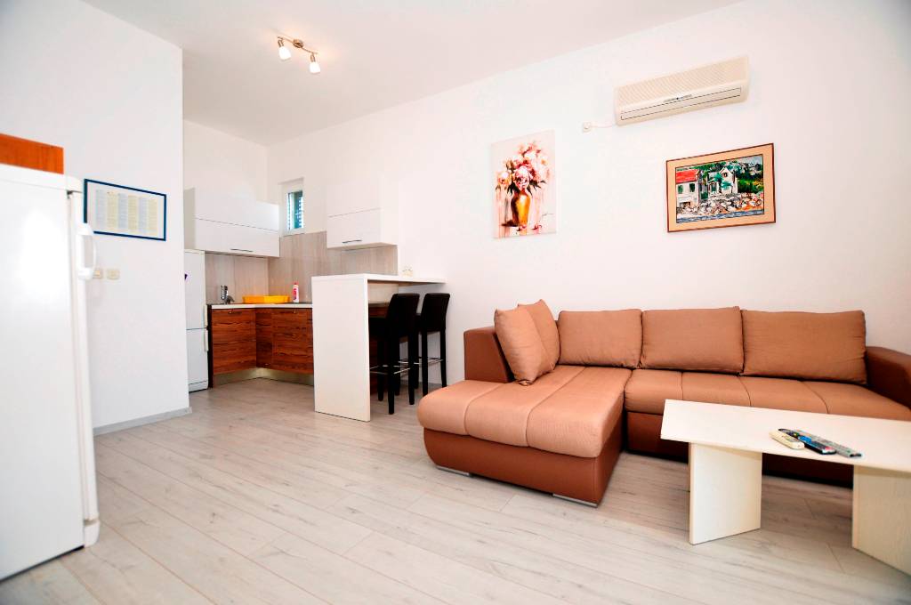 Apartman je smješten na prvom katu ville , poseban i odvojen od svih ostalih apartmana sa vlastitim posebnim ulazom, opremljen je sa dvije spavaće sobe , velikim dnevnim boravkom i modernom kuhinjom, posbnim kupatilom i posebnim WC, te velikmo natkrivenom terasom pogodnom za cjelodnevni boravak , apartman je opremljen svim potrebnim stvarima za ugodan odmor , TV/SAT; internet, klima uređaj, parking prostor za vaša vozila.