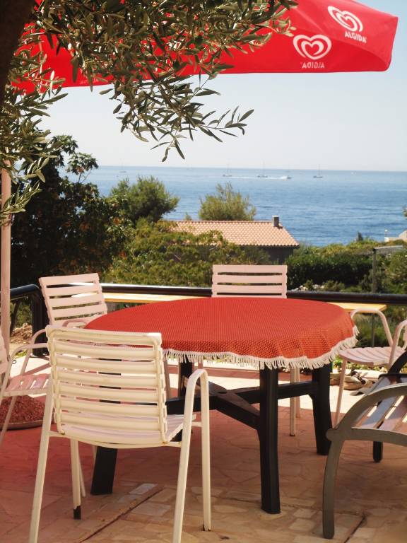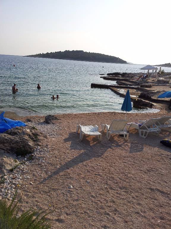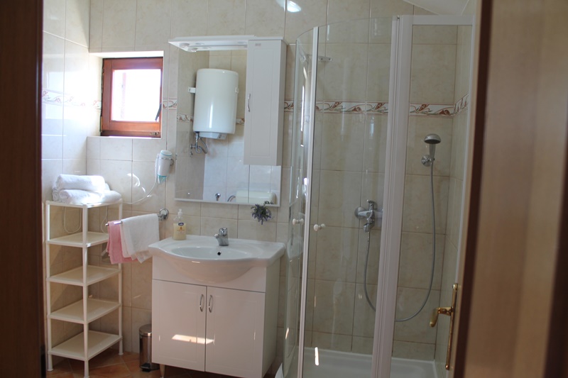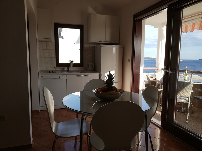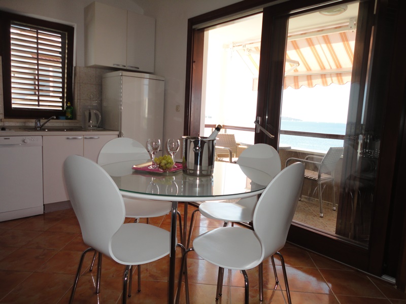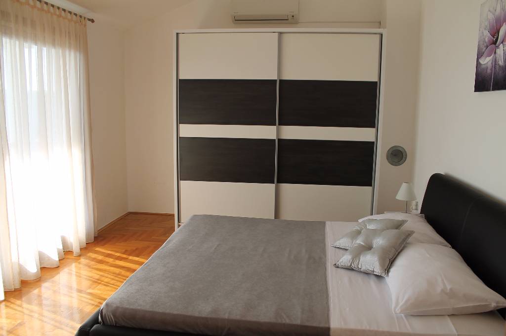 Apartman 2+1 se nalazi na prvom katu. Ima veliku terasu sa pogledom na more. Apartman ima jednu spavaću sobu sa duplim krevetom. Kuhinja je zajedno sa dnevnim boravkom, u kojem je sofa na razvlačenje. Kupaonica je sa tuš kadom i toaletom. Apartman je komforan i dobro opremljen. Ima više plaža, najbliža je udaljena 50m. Ispred kuće je parking, grill i velika terasa za goste. Hotel sa restoranom udaljen je 100m. Do Rogoznice se može prošetati šetnicom uz more. U Rogoznici ima puno restorana i drugih ugostiteljskih objekata gdje se nude specijaliteti dalmatinske kuhinje. Tržnica, ribarnica i supermarketi nalaze se u Rogoznici.