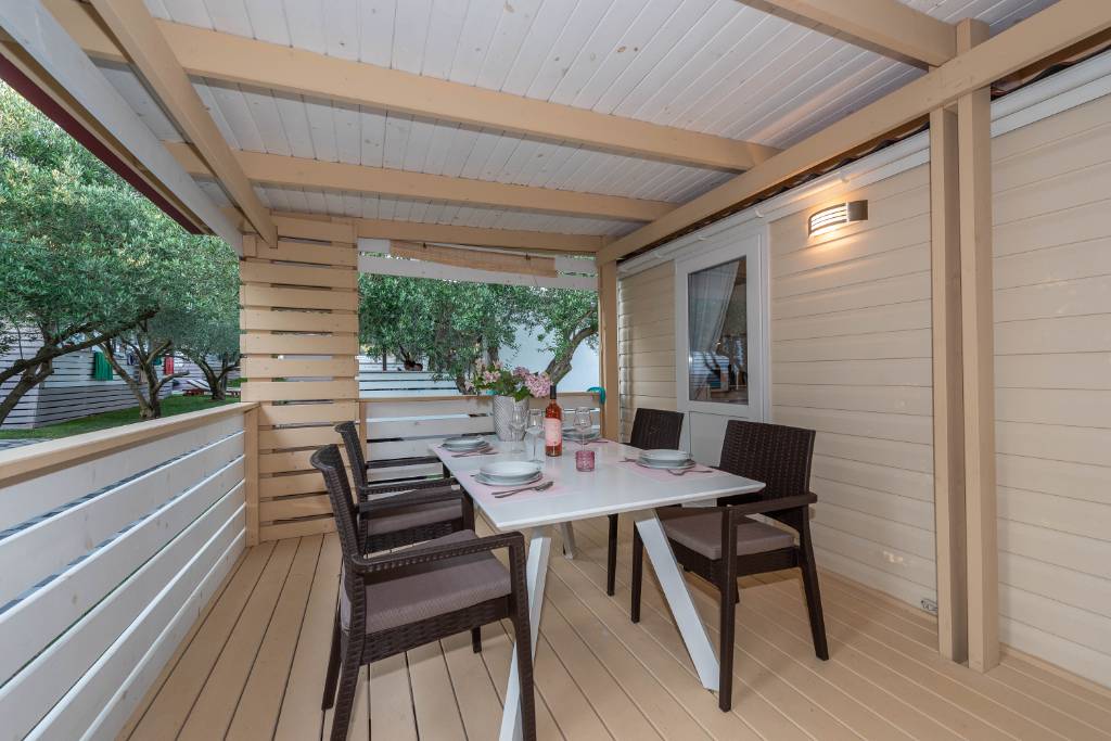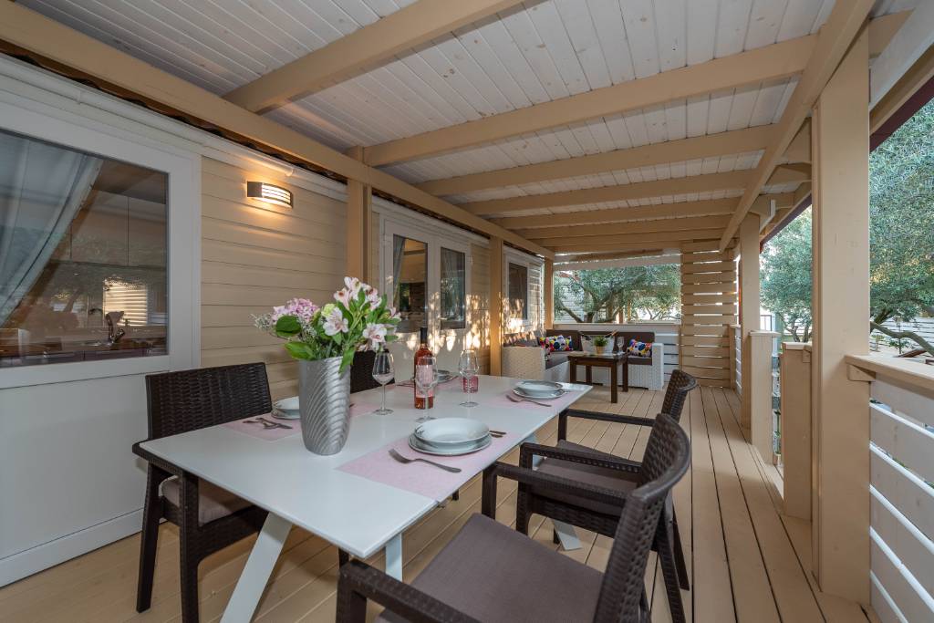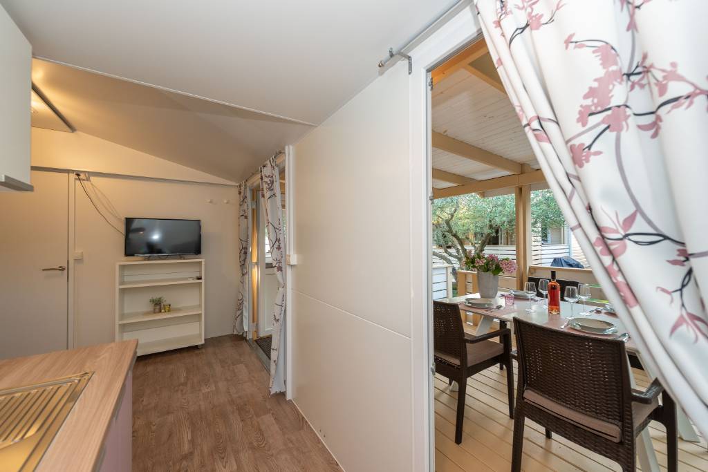 Naš novootvoreni kamp u mirnom djelu Pakoštana idealan je za svačiji odmor. Na prostranom terenu u neposrednoj blizini mora raspolažemo s četiri potpuno nove mobilne kućice izgrađene u 2017. godini. U tišini netaknute prirode smjestili smo kućice da kao pozornicu gledaju prekrasno dalmatinsko more, sunce i otoke. Kućice su okružene maslinama koje preko noći izgledaju fantastično pod svjetlom. Svaka kućica ima prostranu terasu od čak 24 m2 na kojoj se nalazi stol za blagovanje te kutna garnitura za odmor u svako doba dana. Interijer kućica je novouređen te neće nedostajati komfora i opuštenosti u mediteranskom stilu.