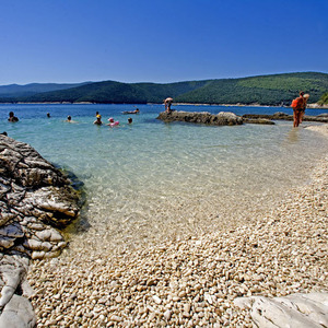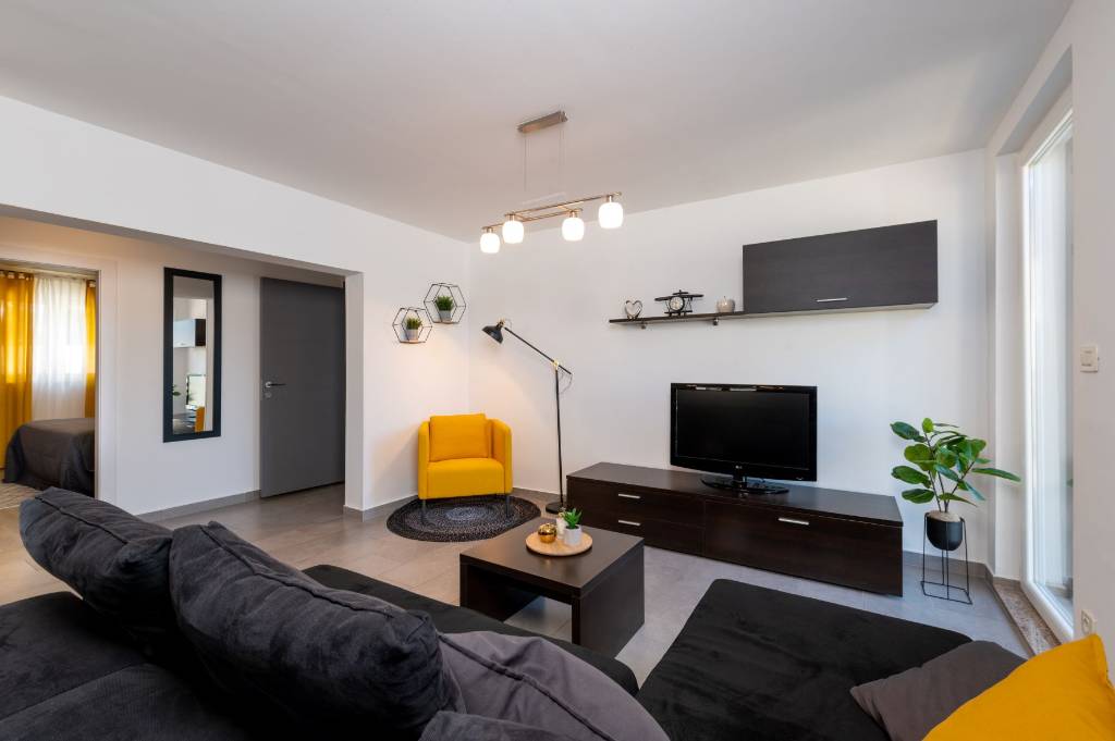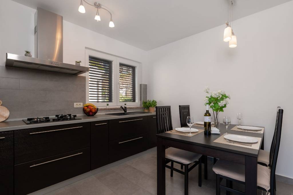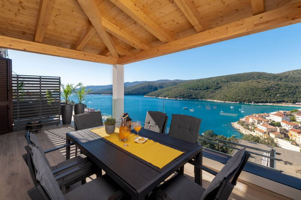 Apartman je smješten na brežuljku iznad uvale. Vanjski prostor prostranog i moderno uređenog apartmana je ograđen, tako da i obitelji s djecom mogu sigurno uživati u boravku. Apartman je potpuno renoviran 2021.godine. Kao poseban naglasak, apartman nudi terasu s panoramskim pogledom na more i srednjovjekovni grad Labin. Apartman se nalazi samo 5 minuta hoda od plaže i od centra Rapca, gdje se nalaze brojne trgovine i restorani.