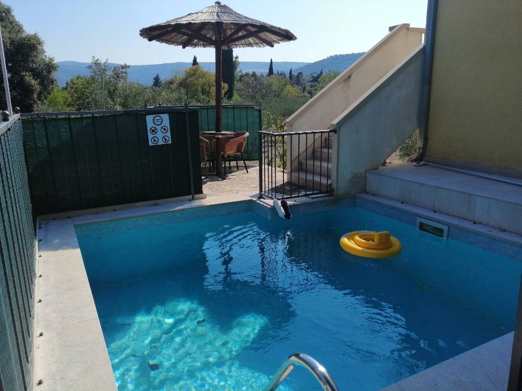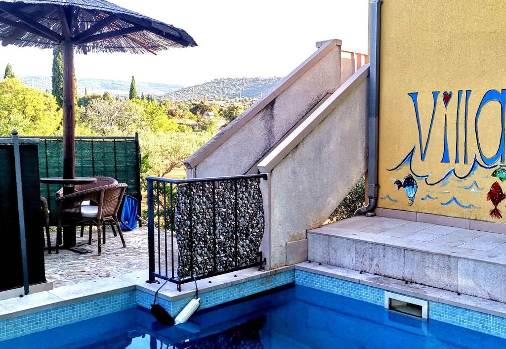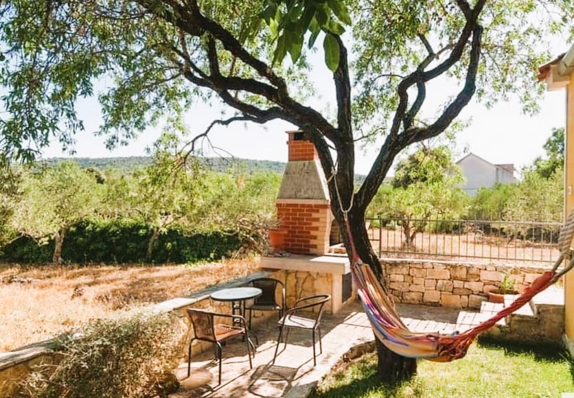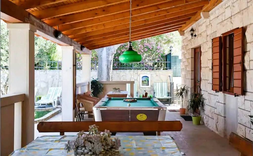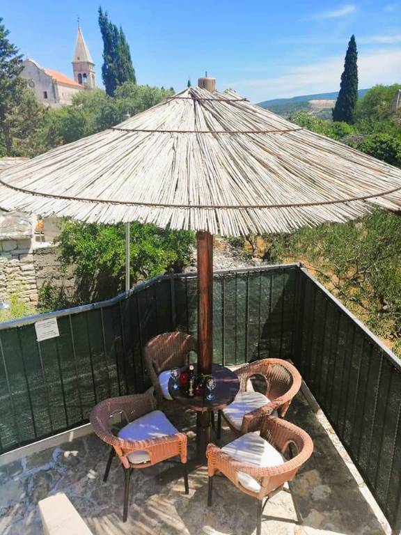 Povoljan smještaj s bazenom i jacuzzijem za vaš odmor sa psom u Dalmaciji, na apsolutno mirnoj lokaciji. Mjesto Škrip na otoku Braču u blizini Splita obećava umirujuće opuštanje. Šljunčana plaža udaljena je 2,5 km. Prekrasna pješčana plaža Lovrečina kod Postira lako je dostupna automobilom, 5 km. Smještaj nudi sve što je potrebno za uspješan odmor. Kuća je idealna za single use te za obitelji i grupe do 12 (+1 malo dijete) osoba. Veliko, dobro održavano imanje od 500 m² i savršeni sadržaji obećavaju ugodan boravak. Prijateljski stambeni prostor proteže se na dvije etaže na 150 m² (dva apartmana od po 75 m²) i sastoji se od dvije blagovaonice i dnevne sobe, četiri dvokrevetne spavaće sobe, tri kupaonice, dvije kuhinje sa širokim izborom posuđa kao i hladnjakom s odjeljak za zamrzavanje, perilica posuđa, mikrovalna pećnica, aparat za kavu i kuhalo za vodu. Opremljen je TV SAT, WiFi, klima uređajem, perilicom rublja, sušilom za kosu, glačalom, daskom za glačanje, suncobranima i 6 ležaljki. Vanjski bazen, parking, solarni vrtni tuš, terase za sunčanje i igralište (pikado, biljar, stolni nogomet...) U garaži možete bezbrižno i sigurno parkirati svoj automobil. Ovdje možete besplatno posuditi visoku stolicu ili dječji krevetić. Dozvoljeno je dovesti kućne ljubimce. Za sve goste dostupan je najam bicikla za istraživanje očaravajućeg područja. Trgovina i restoran udaljeni su svega 100 m od kuće. Od kuće za odmor do sljedećeg većeg mjesta Supetra ima 8 km.