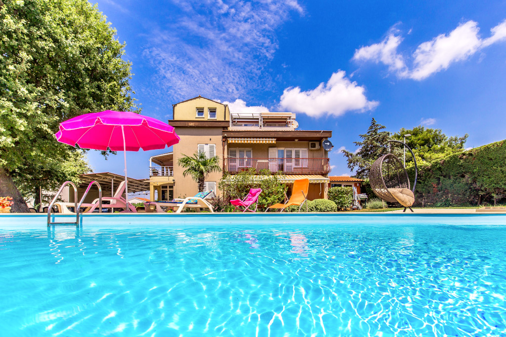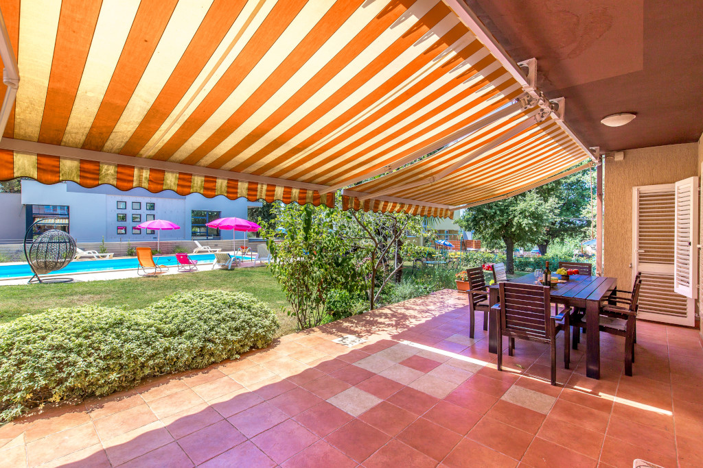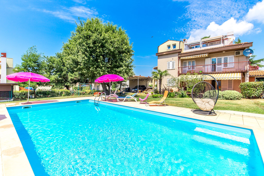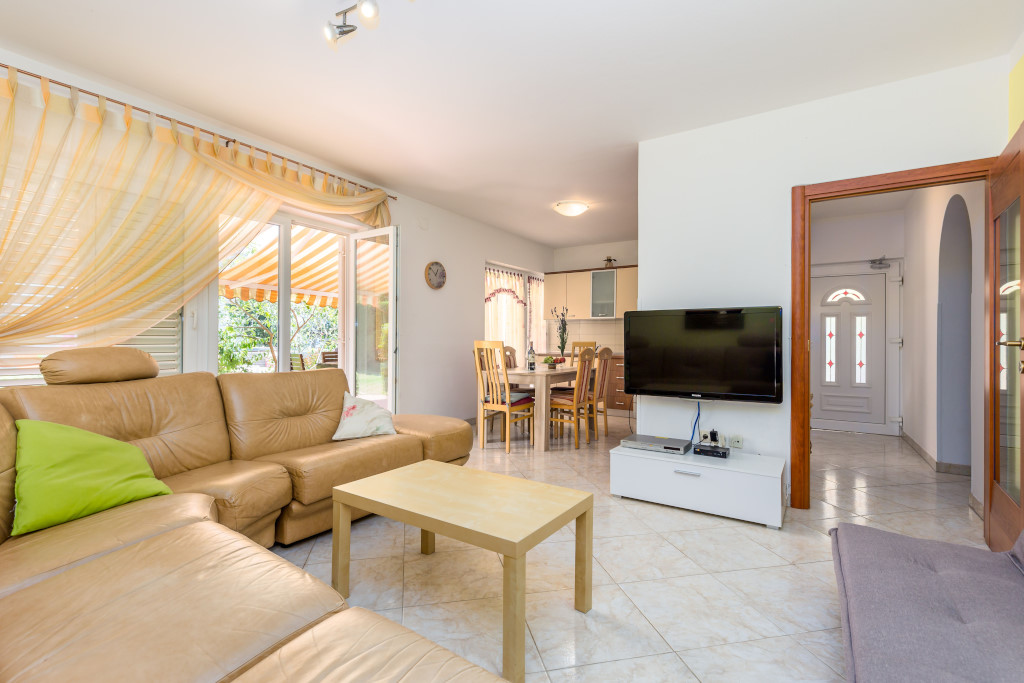 Unutrašnji prostor 4 -sobni apartman 100 m2, u prizemlju. Dnevni boravak/blagovaona s TV-om sa sat. prijemnikom (plosnatim TV ekranom), DVD-om i klima uređajem. Izlaz na terasu. 1 soba s 1 bračnim krevetom (2 x 90 cm, dužina 200 cm). 1 soba s 2 kreveta (90 cm, dužina 200 cm). 1 soba s 1 bračnim krevetom (2 x 80 cm, dužina 200 cm). Otvorena kuhinja (4 ploče za kuhanje, pećnica, perilica za suđe, mikrovalna pećnica, zamrzivač, el. aparat za kavu). Kada/bidet/WC s kutnom kadom. Terasa 25 m2 (djelomično natkrita). Garnitura za sjedenje, vrtni roštilj (prijenosni), ležaljke. Pogled na bazen i vrt. Na raspolaganju: perilica za rublje, sef, sušilo za kosu. Internet (WIFi, besplatan). Kuća/Residence Lijepa kuća "Silva". 350 m od centra mjesta Peroj, 2 km od centra mjesta Fažana, sunčano mjesto, 800 m od mora, 800 m od plaže. Za zajedničko korištenje: parcela 1'000 m2 (ograđena). Za samostalno korištenje: lijepi vrt 600 m2 - travnjak i bilje, bazen pravokutni (10 x 5 m, 140 cm dubok, 29.04.-14.10.) s unutarnjim stepenicama. Vanjski tuš, vrtna garnitura za sjedenje (ljuljačka). U kući: pristup internetu. Na raspolaganju: bicikle (3). Parking (natkriti) uz kuću na parceli. Trgovina 300 m, restoran 500 m, šljunčana plaža, stjenovita plaža 800 m. Golf teren 2 km, tenis 3 km, jahanje konja 3 km, pješačke staze od kuće 500 m, biciklistička staza 550 m. U blizini: NP Brijuni 2 km, Amphitheater 13 km.