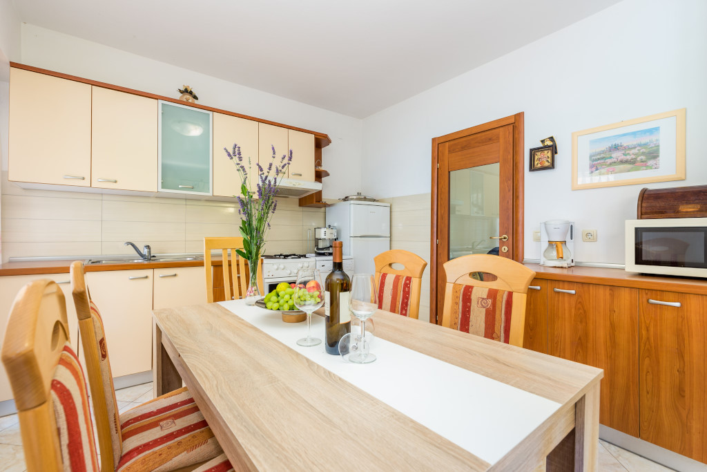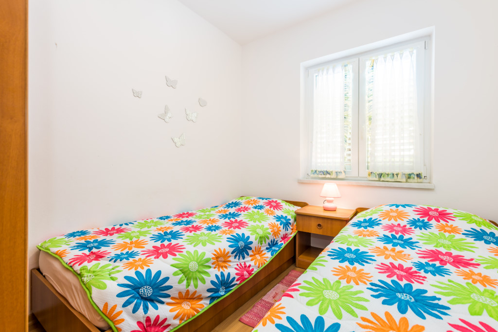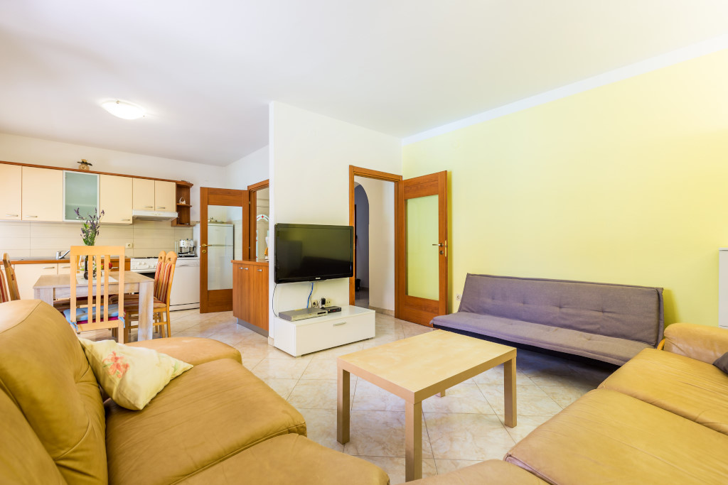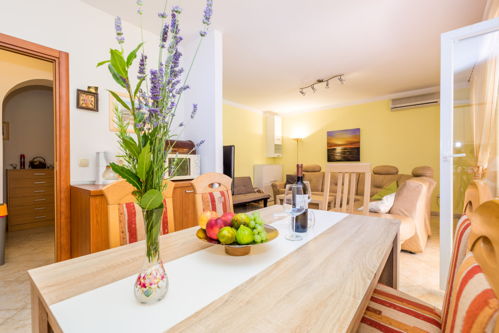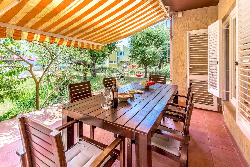 Unutrašnji prostor 4 -sobni apartman 100 m2, u prizemlju. Dnevni boravak/blagovaona s TV-om sa sat. prijemnikom (plosnatim TV ekranom), DVD-om i klima uređajem. Izlaz na terasu. 1 soba s 1 bračnim krevetom (2 x 90 cm, dužina 200 cm). 1 soba s 2 kreveta (90 cm, dužina 200 cm). 1 soba s 1 bračnim krevetom (2 x 80 cm, dužina 200 cm). Otvorena kuhinja (4 ploče za kuhanje, pećnica, perilica za suđe, mikrovalna pećnica, zamrzivač, el. aparat za kavu). Kada/bidet/WC s kutnom kadom. Terasa 25 m2 (djelomično natkrita). Garnitura za sjedenje, vrtni roštilj (prijenosni), ležaljke. Pogled na bazen i vrt. Na raspolaganju: perilica za rublje, sef, sušilo za kosu. Internet (WIFi, besplatan). Kuća/Residence Lijepa kuća "Silva". 350 m od centra mjesta Peroj, 2 km od centra mjesta Fažana, sunčano mjesto, 800 m od mora, 800 m od plaže. Za zajedničko korištenje: parcela 1'000 m2 (ograđena). Za samostalno korištenje: lijepi vrt 600 m2 - travnjak i bilje, bazen pravokutni (10 x 5 m, 140 cm dubok, 29.04.-14.10.) s unutarnjim stepenicama. Vanjski tuš, vrtna garnitura za sjedenje (ljuljačka). U kući: pristup internetu. Na raspolaganju: bicikle (3). Parking (natkriti) uz kuću na parceli. Trgovina 300 m, restoran 500 m, šljunčana plaža, stjenovita plaža 800 m. Golf teren 2 km, tenis 3 km, jahanje konja 3 km, pješačke staze od kuće 500 m, biciklistička staza 550 m. U blizini: NP Brijuni 2 km, Amphitheater 13 km.