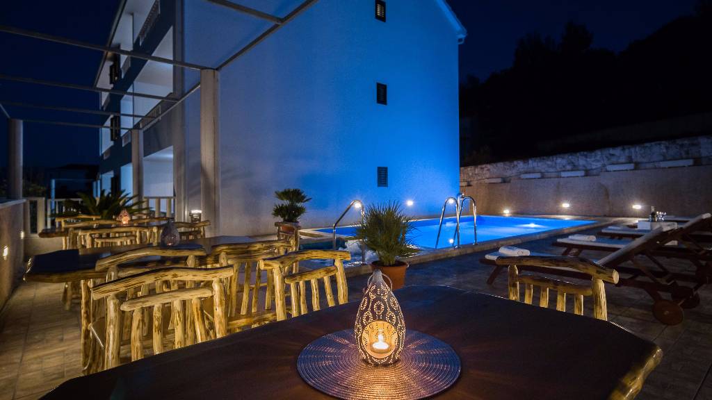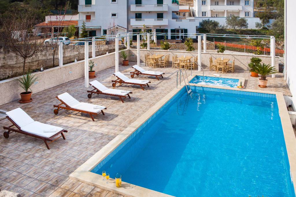 Naši apartmani se nalaze u istoj zgradi . Zgrada sadrži vanjske i unutarnje bazene i jacuzzije , kao i komine. Imamo dvosobne apartmane gdje može stati 4 ljudi i jednosobne apartmane gdje može stat 2 ljudi. Naši apartmani nalaze se 100 m od plaže , a 1 km do samog centra. Naša zgrada je u tihom predjelu mjesta gdje nije velika prometnica autima tako da vam možemo omogućiti oazu mira i uživanja. Nudimo pristupačne cijene za velike grupe u van sezonskom periodu od veljače do lipnja. Veselimo se Vašem dolasku jer vam nudimo nezaboravni odmor!