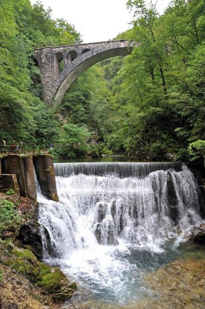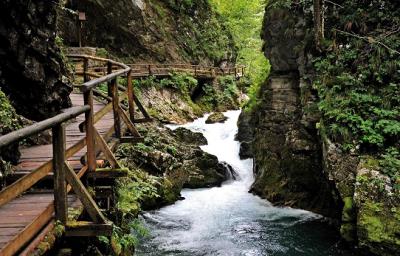 ![]() Erleben Sie die unversehrte Natur von Bled in den ersten als touristische Sehenswürdigkeit ausgebauten Klammen Sloweniens. Entdeckung des Vintgar-KlammsIn unmittelbarer Nähe von Gorje, ca. 4 km nordwestlich von Bled entfernt, hat der Fluss Radovna den Klamm eingeschnitten. Im Jahre 1891 wurde die Klamm von Jakob umer, dem Bürgermeister von Gorje, und dem Kartografen und Fotografen Benedikt Lergetporer entdeckt. Die Klamm war ursprünglich unpassierbar, aber da sich bereits damals der Tourismus in Bled entwickelte, wurde sie schon bald ausgebaut und für die Öffentlichkeit zugänglich gemacht. Aufgrund seiner natürlichen Schönheiten steht Vintgar auf die Liste der bedeutenderen touristischen Sehenswürdigkeiten und die Besucherzahl wächst von Jahr zu Jahr. ![]() BeschreibungDie 1,6 km lange Felsenschlucht (Klamm) ist zwischen den senkrechten Wänden der Berge Hom und Bort eingekerbt und bietet durch die Radovna mit ihren zahlreichen Wasserfällen, Gumpen und Stromschnellen einen wunderschönen Anblick. Durch die Schlucht führt ein Lehrpfad über die Holzstege und die umer-Galerien bis zum gewaltigen 13 m hohen Wasserfall um. In Vintgar gibt es noch zwei Sehenswürdigkeiten, die von menschlicher Hand geschaffen wurden. Die einbögige Steinbrücke der Bohinjer Eisenbahn von 1906, die 33,5 m über der Straße die Klamm und den Damm überquert, von dem aus das Wasser bis zum kleinen Wasserkraftwerk Vintgar pod umom geleitet wird. ![]() NamensherkunftEine Erklärung ist, dass der Name Vintgar aus dem deutschen Wort Weingarten bzw. nach den Weinbergen im nahegelegenen Ort Podhom abgeleitet wurde. Die andere Möglichkeit für die Namensgebung ist, dass der Querschnitt in seiner Form an ein Weinglas erinnert. Auch andere ähnliche Schluchten in Slowenien wurden nach dem Bleder Vintgar benannt (Iki vintgar, Ribniki vintgar oberhalb von Srednja vas in Bohinj und Bistriki vintgar bei Slovenske Konjice). PflanzenweltAufgrund der spezifischen klimatischen und mikroreliefen Verhältnisse gedeihen in Vintgar zahlreiche Pflanzenarten, die sich von der für die Gegend typischen Pflanzenwelt unterscheiden. Als erster bemerkte dies der Pfarrer und Hobbybotaniker Janez afer. Seine Liste der Vintgar-Pflanzen veröffentlichte bereits Ivan Godec 1899 in seinem Artikel in der Zeitschrift Dom in svet und später noch in dem kleinen Buch mit dem Titel [Das Bild aus der Gorenjska-Schweiz]. Beeindruckende Impressionen...Der Bleder Vintgar beeindruckt Jedermann durch seine steilen Tiefen, die senkrechten Felswänden, den reißenden Fluss darunter, die vielfältige Pflanzenwelt und den größten slowenischen Wasserfall. Hier finden Sie weitere interessante Reise-Informationen über die Gemeinde Bled