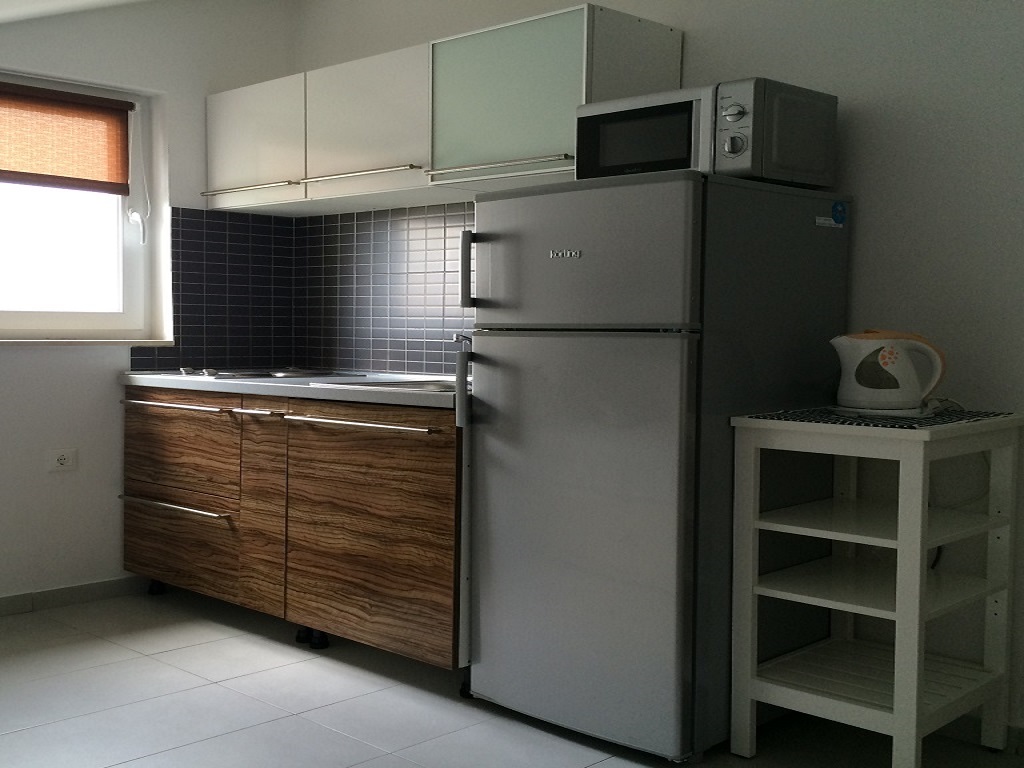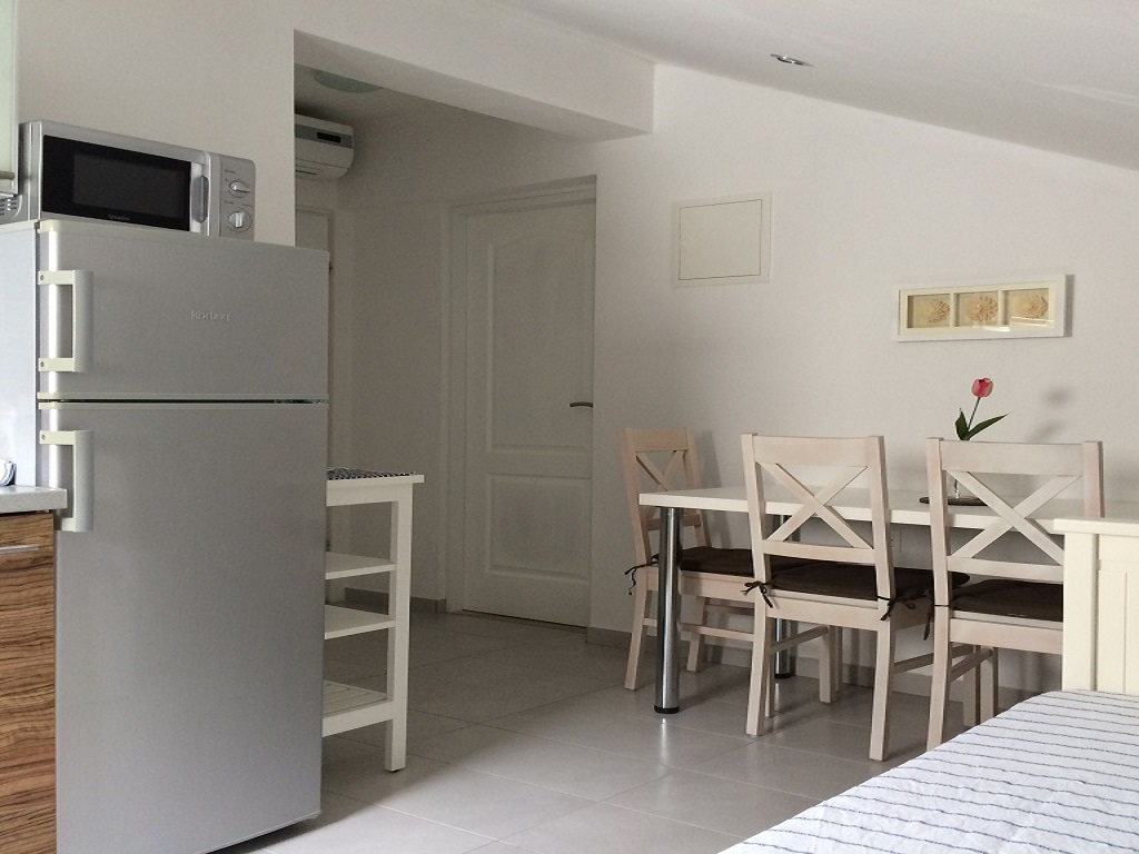 Die Wohnung befindet sich im obersten Stockwerk. Es verfügt über 1 Schlafzimmer mit einem Doppelbett , Bad, Küche (es gibt eine Schlafcouch ). Der apartmant verfügt über eine Terrasse mit herrlichem Panoramablick see, Mikrowelle, Wasserkochern, Wi-Fi, Klimaanlage, Parkplatz im Schatten, Grill i