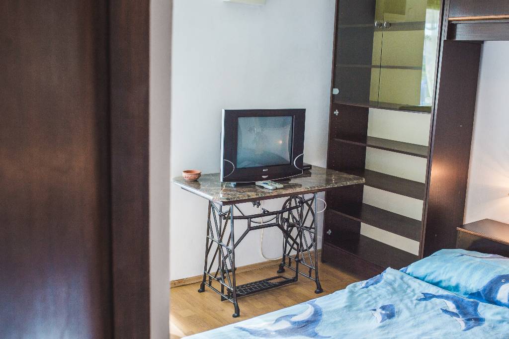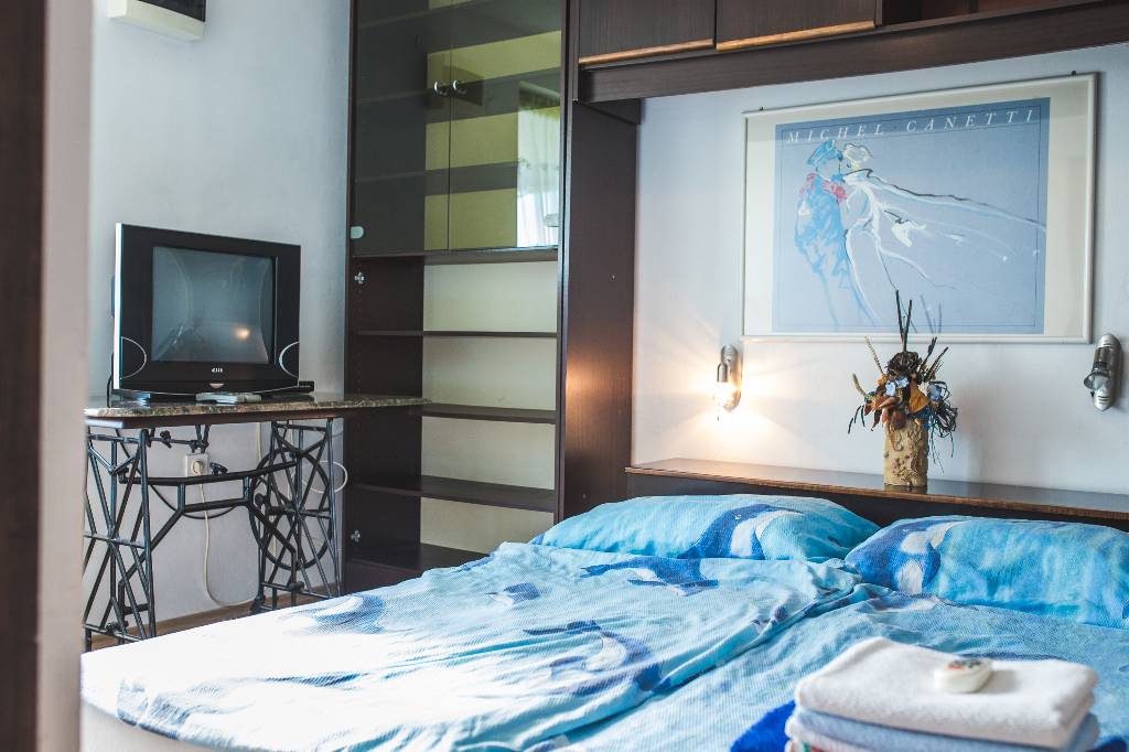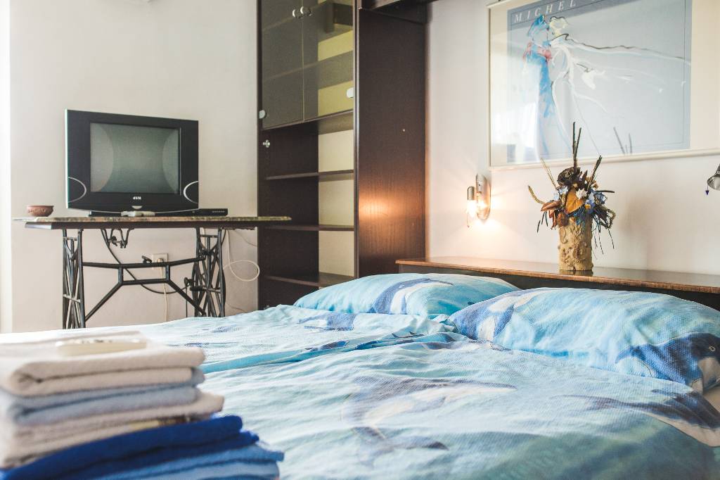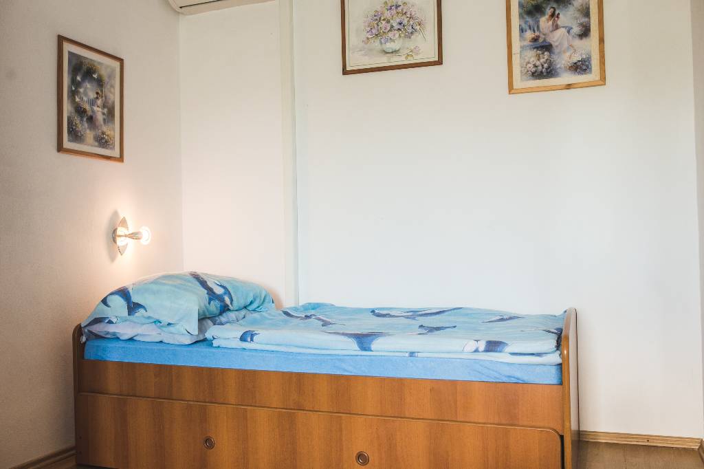 Die Einzimmerwohnung liegt im zweiten Stock des Familienhauses und hat einen dazugehörigen Parkplatz. Sie haben die Möglichkeit, zwei zusätzliche Betten zu nehmen. In der Wohnung sind auch ein Badezimmer mit Dusche und eine vollausgestattete Küche (mit allem Zubehör, Herd, Kühlschrank und Ka