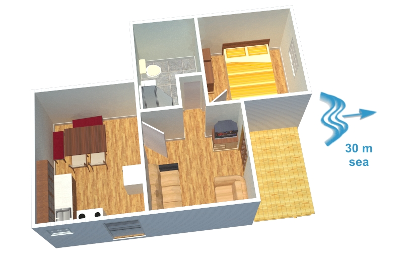 Diese Ferienwohnungen befinden sich in einem neuwertigen Appartementhaus in der Ortschaft Mandre auf der Insel Pag. Das Haus hat eine ideale Lage direkt in der ersten Häuserreihe zur Küste. Der Strand liegt praktisch vor der Tür, nur 30 Meter vom Objekt entfernt. Da der Ortskern nur 200 Meter ent