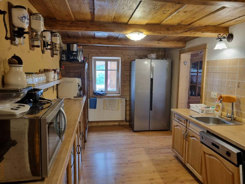 Voll ausgestattete Küche (Elektroherd, Backofen, Mikrowelle, Kühlschrank, Geschirrspüler, Wasserkocher, Kaffeemaschine sowie einige weitere Kleingeräte und Geschirr aller Art)