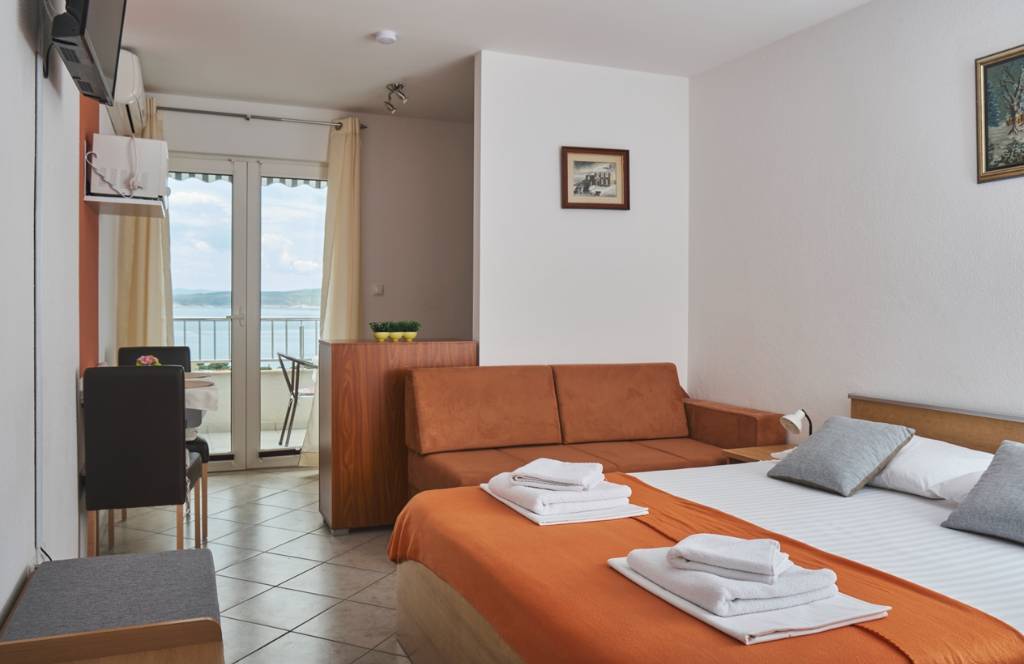 Studio Ferienwohnung mit Meerblick. Geeignet für 2-3 Personen .Die Wohnung befindet sich im 2, Stock, und ist komplett eingerichtet für ihr Aufenthalt. Bettwäsche und Handtücher werden wöchentlich ausgetauscht . Die Wohnung ist klimatisiert .Es sind genug Parkplätze für alle Gäste vorhan