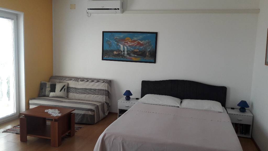 Das Apartment 4 ist in einem Privathaus und befindet sich im 2. Stock. Es hat einen Balkon mit Blick auf die Insel Krk und die Kvarner Bucht.