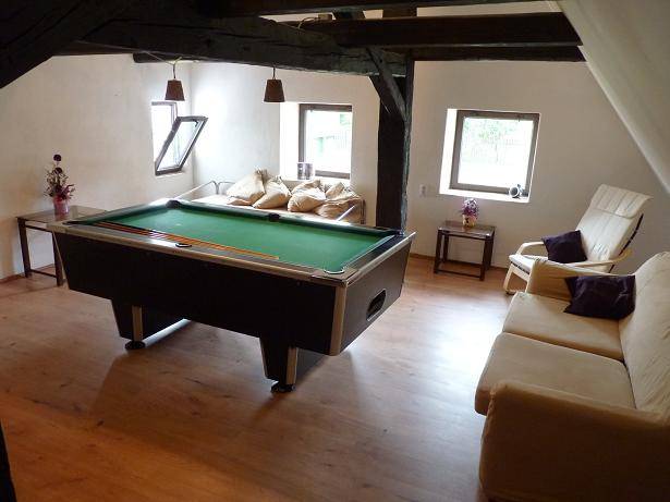 - Gemeinschaftsraum mit Billard, TV und Sitzmöglichkeit