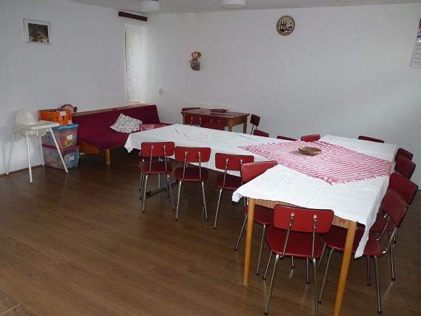 - komplet und modern eingerichtete Küche mit Esssaal (Geschirr für 25 Personen, 2x Kühlschrank mit Tiefkühltruhe, Herd + Backofen, MIkrowelle, Spülmaschine, Kochkanne, Toaster, Kinderhochstuhl)