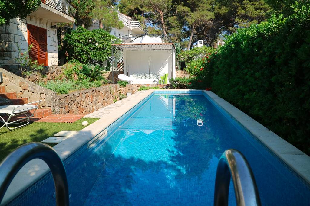 Die Villa Tana mit Schwimmbad und ein kleiner Privatstrand befindet sich in Jelsa auf der Insel Hvar - eine der schönsten Inseln in Dalmatien. Dies ist ein perfekter Ort, um das Beste aus Ihrem Urlaub an unserer wunderschönen Adriaküste zu machen. Die Villa befindet sich in der zweiten Reihe zum