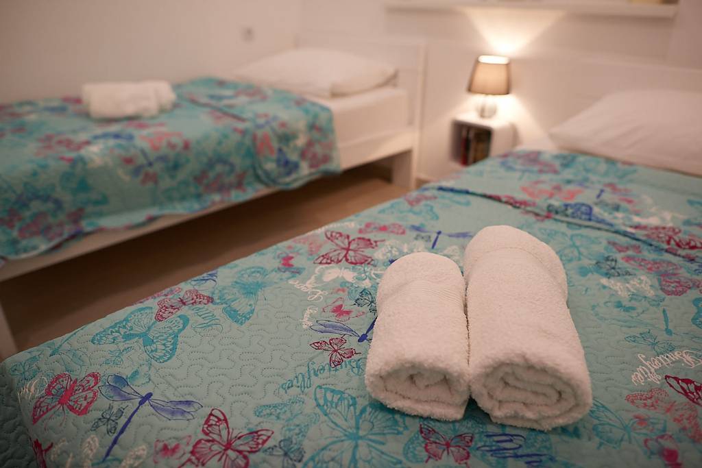 Villa AdriaPag II mit 4 Luxus-suiten APARTMENT B1 mit 2 Schwimmbad – Apartment für 4-6 Personen, 72.5 m² – Küche (Kühlschrank / Gefrierschrank, Herd, Backofen) – Spülmaschine – Kaffeemaschine, Wasserkocher, Mikrowelle, Handmixer, Toaster – zwei Schlafzimmer mit den Doppelbetten