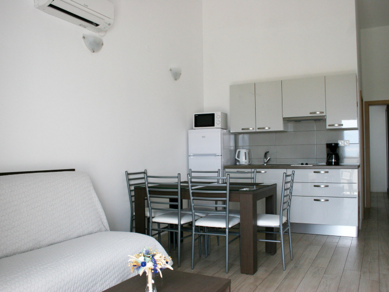 Die Apartments befinden sich in der Nähe des Zentrums von Baska, was bedeutet, dass der Strand so nah ist, dass Sie manchmal einen angenehmen Duft des Meeres spüren können, indem Sie auf den Balkon gehen und den morgendlichen Komfort genießen. Das neu eingerichtete Interieur der Wohnung besteht