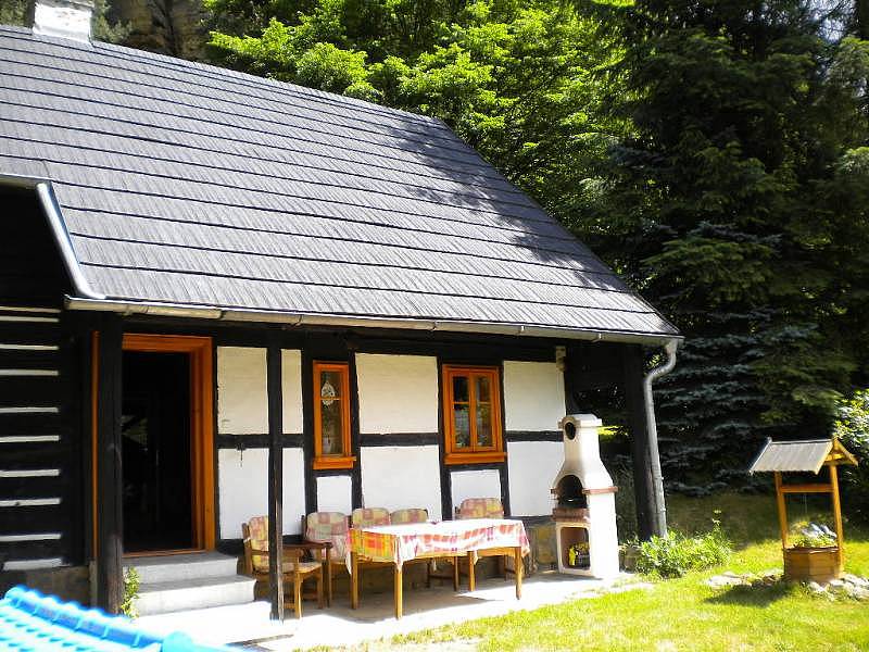 150 Jahre altes Blockhaus für 8 Personen in 2 Schlafzimmern am Rande des beliebten Ferienortes Jetřichovice. Direkt oberhalb des Hauses im Garten erhebt sich einer der Sandsteinfelsen, die so typisch für diese Landschaft sind. Das Ferienhaus kann nur für Erholungsaufenthalte genutzt werden, nich