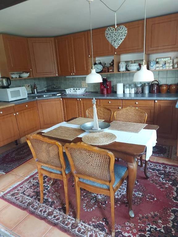 Das Objekt wird wahlweise mit Gasheizung oder Holzheizkessel beheizt; im Wohnzimmer im Erdgeschoss gibt es zusätzlich einen Kaminofen.