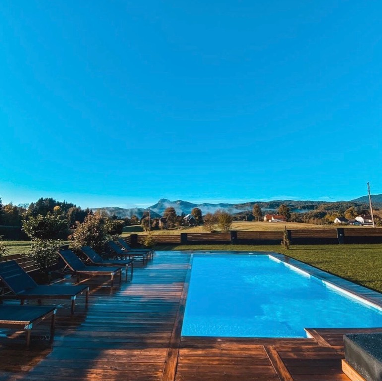 Das Zoe Luxury House in Gomirje bietet ein Spa, eine Sauna, einen Whirlpool und einen gepflasterten Innenhof mit Blick auf den eigenen Außenpool und den Garten. Diese klimatisierte Unterkunft liegt 43 km von Fužine entfernt und verfügt über einen privaten Parkplatz und kostenfreies WLAN. Die