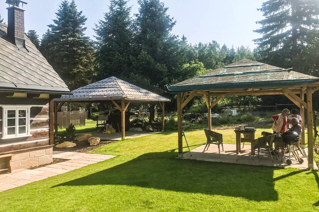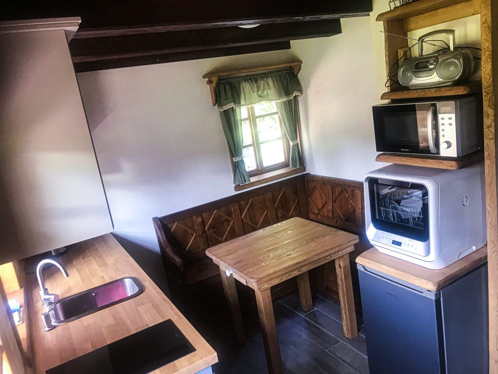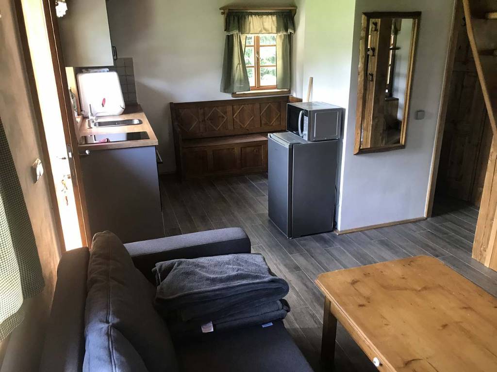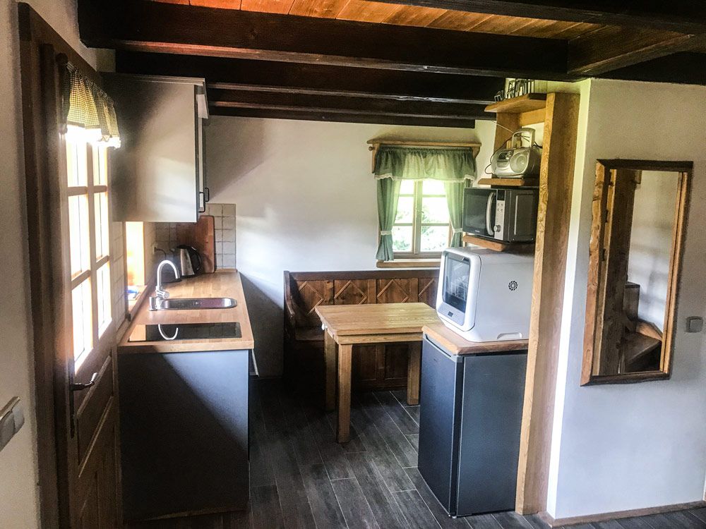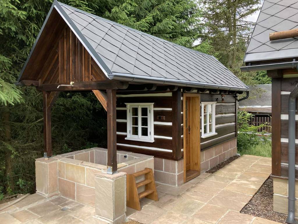 Neu erbautes Holzhaus mit Sauna und einem Garten in der Gemeinde Doubice. Die Gesamtkapazität beträgt 6 Personen, ideal ist das Haus jedoch für 4-köpfige Familie. Zimmeraufteilung: Erdgeschoss Kleine voll ausgestattete Küche mit Herd, Backofen, Spülmaschine, Kochkanne, Kühlschrank, Mikrow