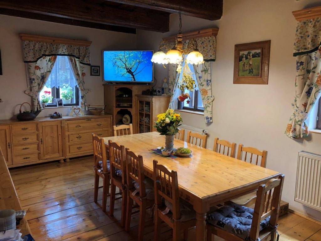 Ein stilvolles historisches Fachwerkhaus für bis 10 Personen in 2 Schlafzimmern aus dem Jahr 1849 im Český Středohoří im malerischen Dorf Dolní Nezly in der Nähe der historischen Stadt Litoměřice. Das Ferienhaus verfügt über 2 Etagen. Erdgeschoss voll ausgestattete Küche (Kühls