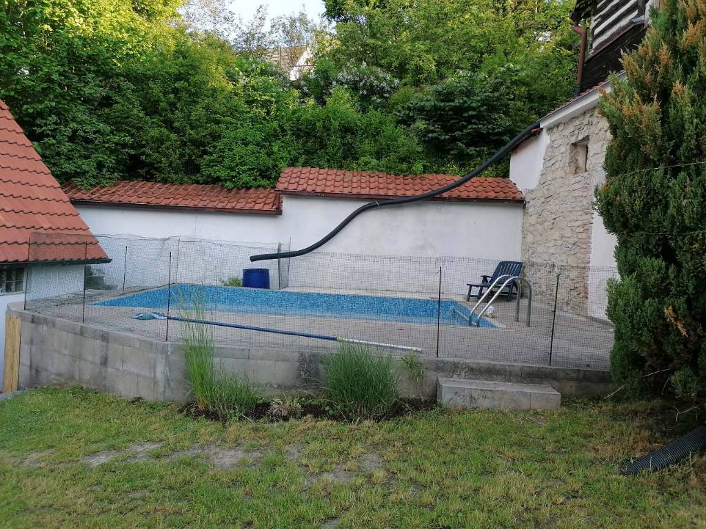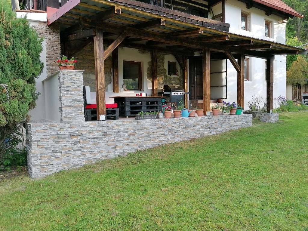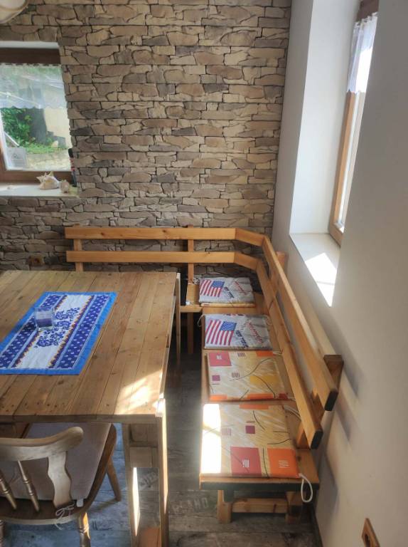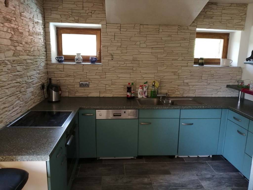 Gemeinde Velky Hubenov, Entfernung von Steti beträgt 13 Autominuten Erdgeschoss 1 ausgestatette Küche + Esstisch und Stühle (Wasserkocher, Mikrowelle, Cerankochfeld, Einbaubackofen, Geschirrspüler, Waschmaschine, Kühlschrank, Geschirr (Gläser, Tassen, Töpfe, Teller, Besteck, Stabmixer, an