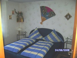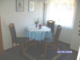 Gemütliche Ferienwohnung mit separatem Eingang in ruhiger Lage direkt am Waldrand. Die Wohnung verfügt über Schlafzimmer, Wohn-und Esszimmer mit Küchenzeile, SAT/TV sowie Bad/WC und WC. Freisitz mit Liegewiese und Kinderspielplatz sowie Grillmöglichkeit beim Haus. Viele Ausflugsziele in unmitte