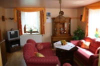 Gemütliche Ferienwohnung (Nichtraucher) mit separatem Eingang, Erdgeschoss, Größe ca. 70 m², gut geeignet bis zu 4 Personen u. Kleinkind, ein Wohnraum mit Sat-TV, Videorecorder, Stereoanlage mit Cass./ Radio/ CD (CD- R und CD-RW kompatibel), Bücher und Spielen, zwei Schlafräume, WC/Bad mit F