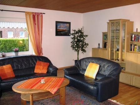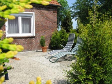 Preiswerte Ferienwohnung für Singles bis Senioren mit 2 Schlafzimmer, Terrasse, Liegewiesen und einer Sauna im grossen Garten in Holtgast nahe bei der Bärenstadt Esens sowie den beiden Nordseeheilbädern Bensersiel und Neuharlingersiel an der südlichen Nordsee in Niedersachsen. Die großzügig