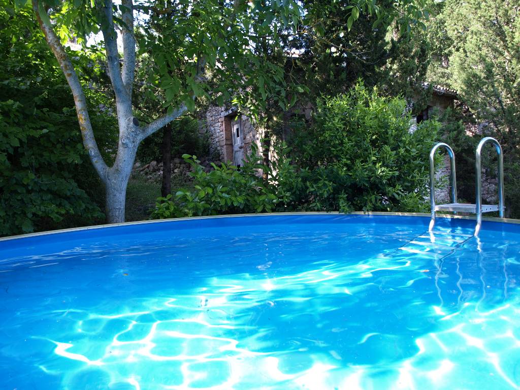 im schönsten Teil Umbriens, wo es noch viel zu entdecken gibt. Es wurde mit einem Turm als eine Art Bergfeste weithin sichtbar auf einem Berghang nahe dem Dorf Buggiano erbaut. Nach und nach siedelten sich in unmittelbarer Nähe einige Bauern an und es entstand Bugianpiccolo. Das Grundstück mit Pinien, Zypressen, blühenden Büschen und Blumen hat verschiedene Ebenen mit teilweise hohen Mauern aus Naturstein. In einer Ecke des Gartens gibt es, von Büschen und Bäumen umgeben, ein schönes Schwimmbecken mit 5 Metern Durchmesser. Im Schatten der Bäume finden Sie stimmungsvolle Plätze mit einer faszinierenden Aussicht auf die eindrucksvolle Umgebung.